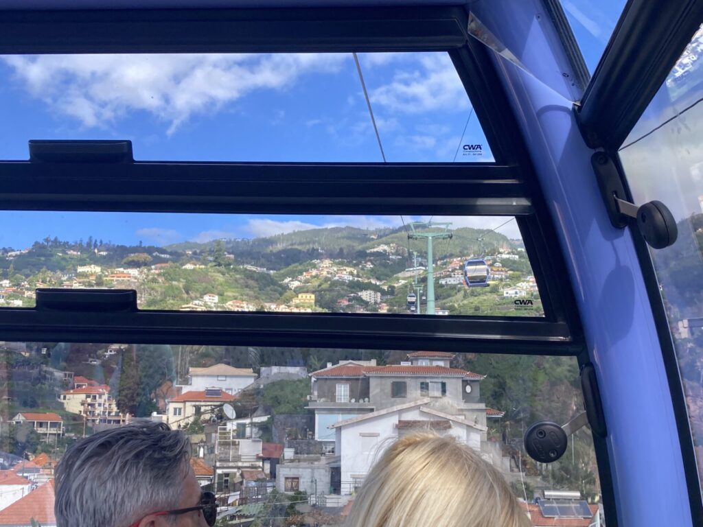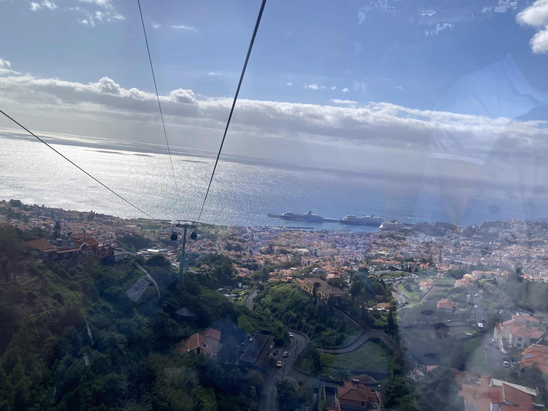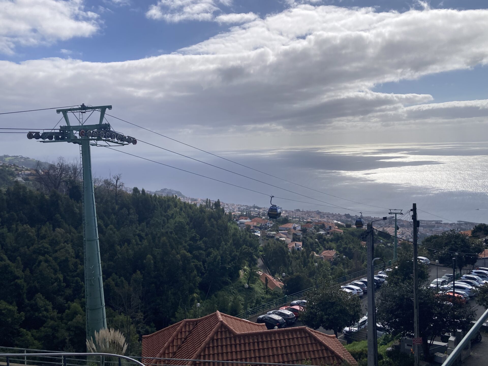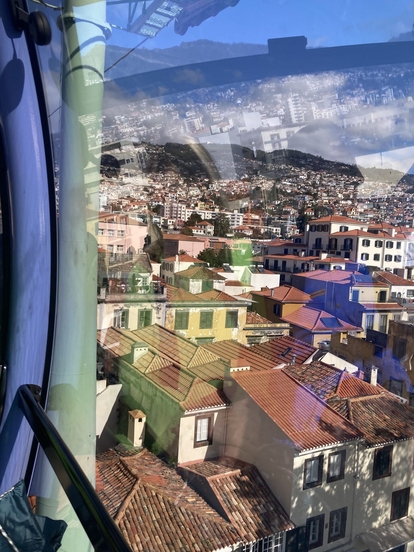 Heute konnte ich endlich durch die grünen Weiten des Tropischen Gartens Monte Palace schreiten. Nach ihrer Vormittags-Tour traf ich mich mit Katharina vor der Seilbahn, die uns hinauf zu dem Garten schaukeln sollte. Wir kauften uns Tickets, standen ein Weilchen in der Schlange und saßen 10 Minuten später mit vier weiteren Menschen in einer Gondel. Die Fahrt dauerte länger als gedacht und so hatten wir viel Zeit, um die fabelhafte Aussicht auf die Dächer Funchals, den Hafen, alle Schnellstraßen und das Getummel unter uns zu genießen.