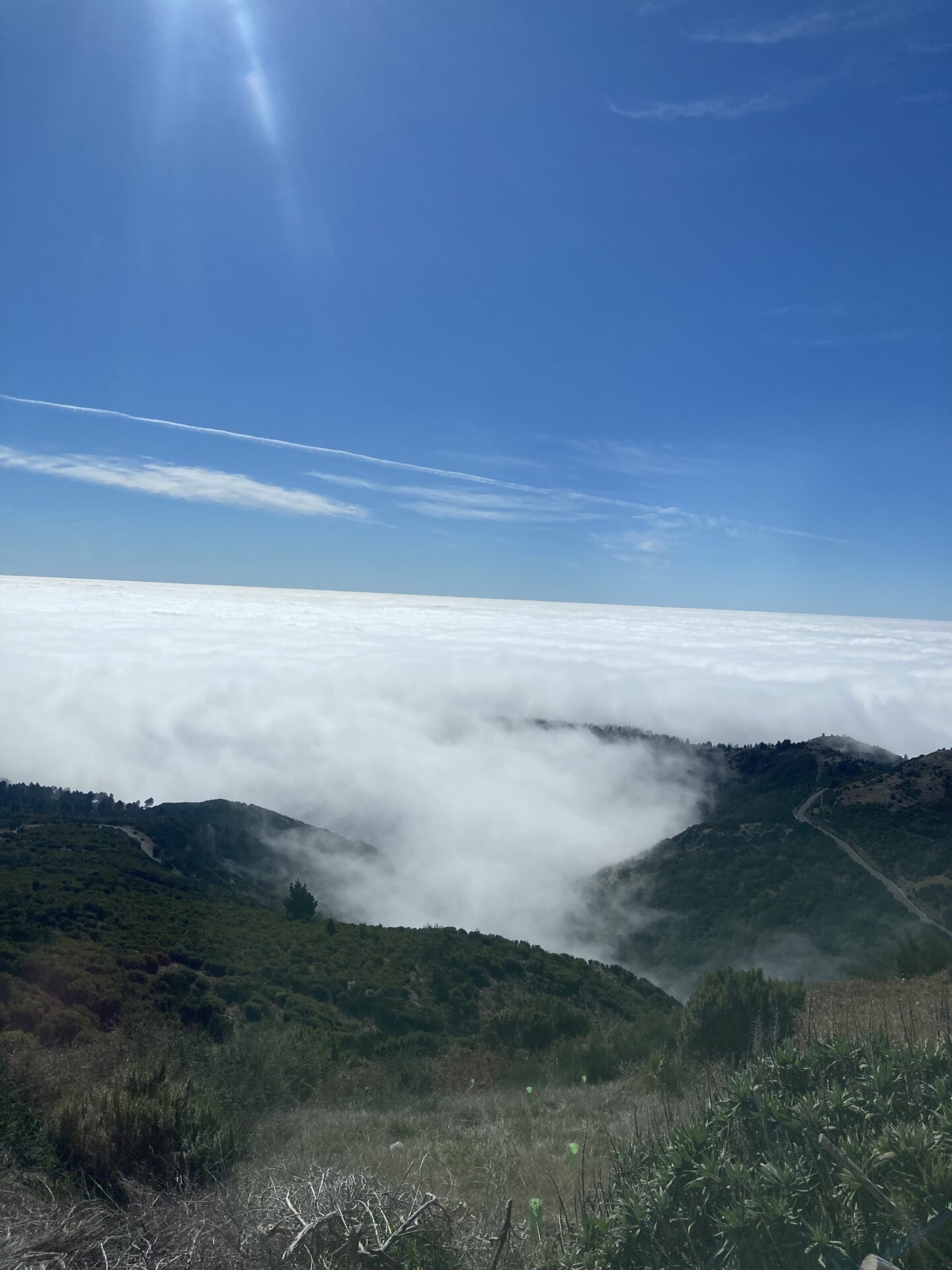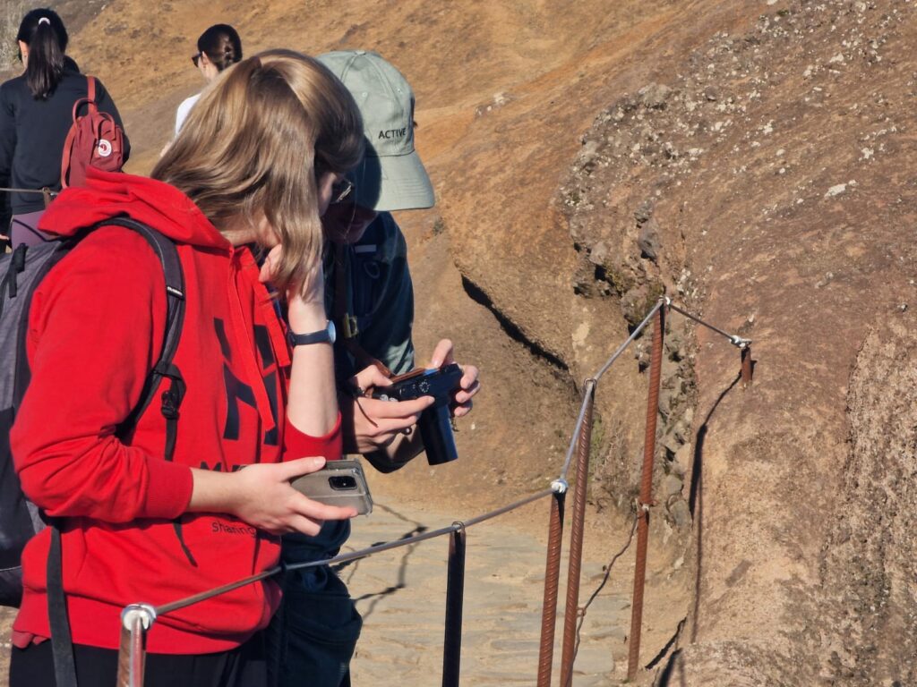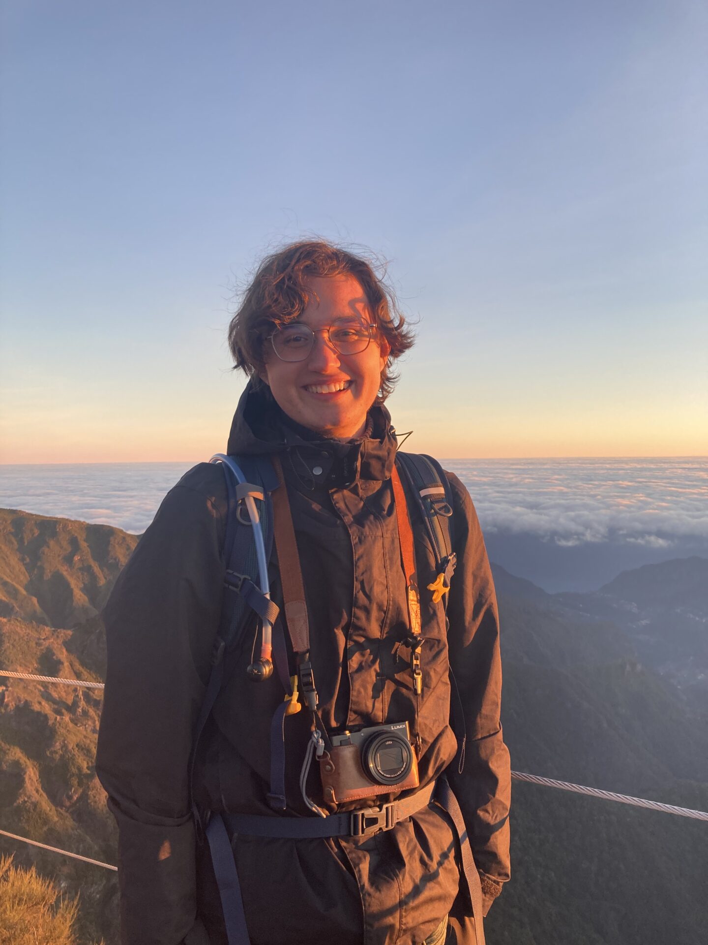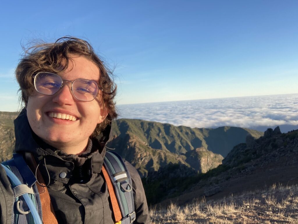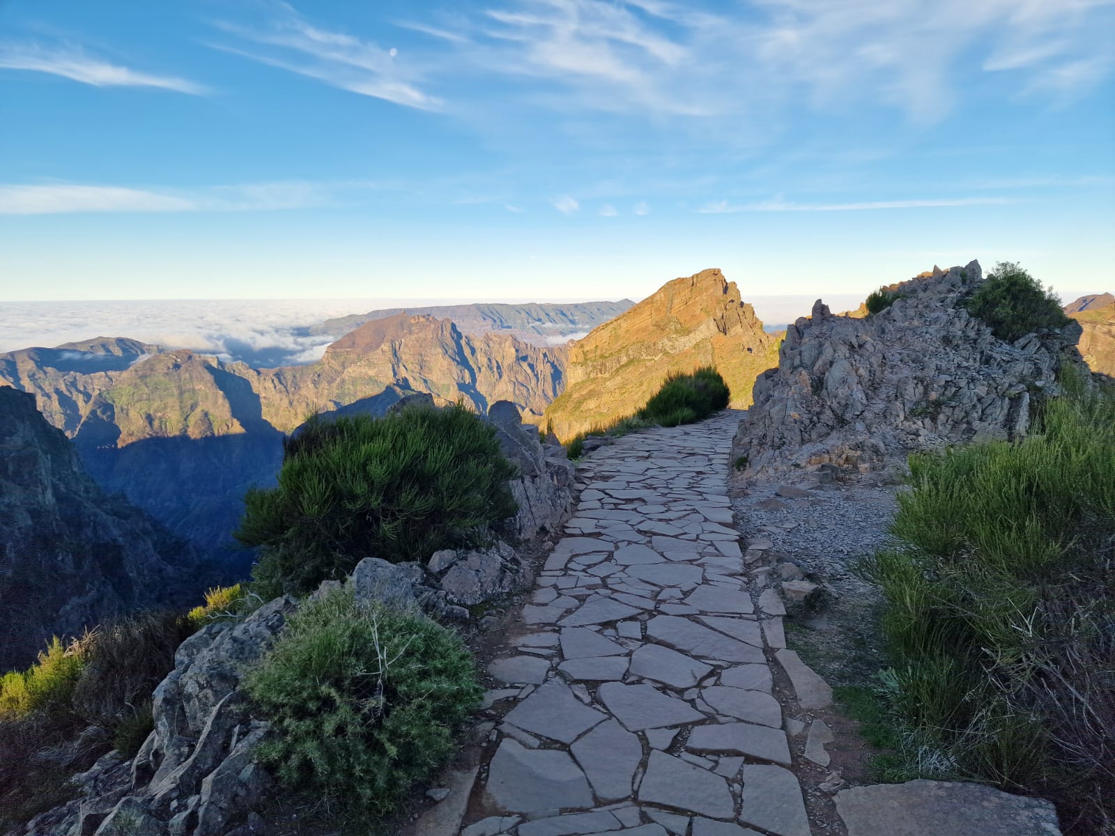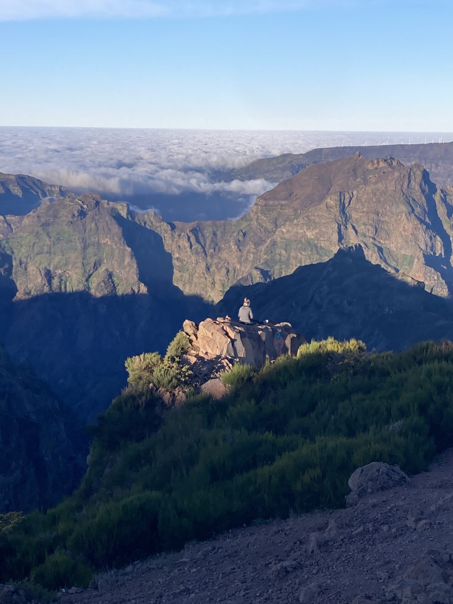 Viele hundert Fotos, Videos und Selfies später machten wir uns in der Morgensonne auf, zu einem Wanderweg, der zum Gipfen „Pico do Ruivo“ hinüberführt. Da es jüngst verheerende Brände gegeben hatte, war der Weg nur bis zu einem gewissen Punkt für die Öffentlichkeit zugänglich. Bis dorthin kraxelten wir die Felsen über die berühmte „Stairway to Heaven“ auf und ab, entdeckten Vögel, die sehr interessante froschartige Geräusche von sich gaben, und genossen die bombastische Aussicht.