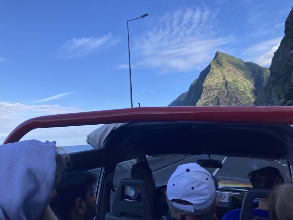 Dann ging es schon wieder ab nach Funchal und diesmal konnte ich ganz hinten auf den quer stehenden Bänken sitzen – für die noch intensivere Jeep-Erfahrung. Auf dem Rückweg fuhren wir noch durch São Vicente, bis ein Tunnel den nächsten jagte.