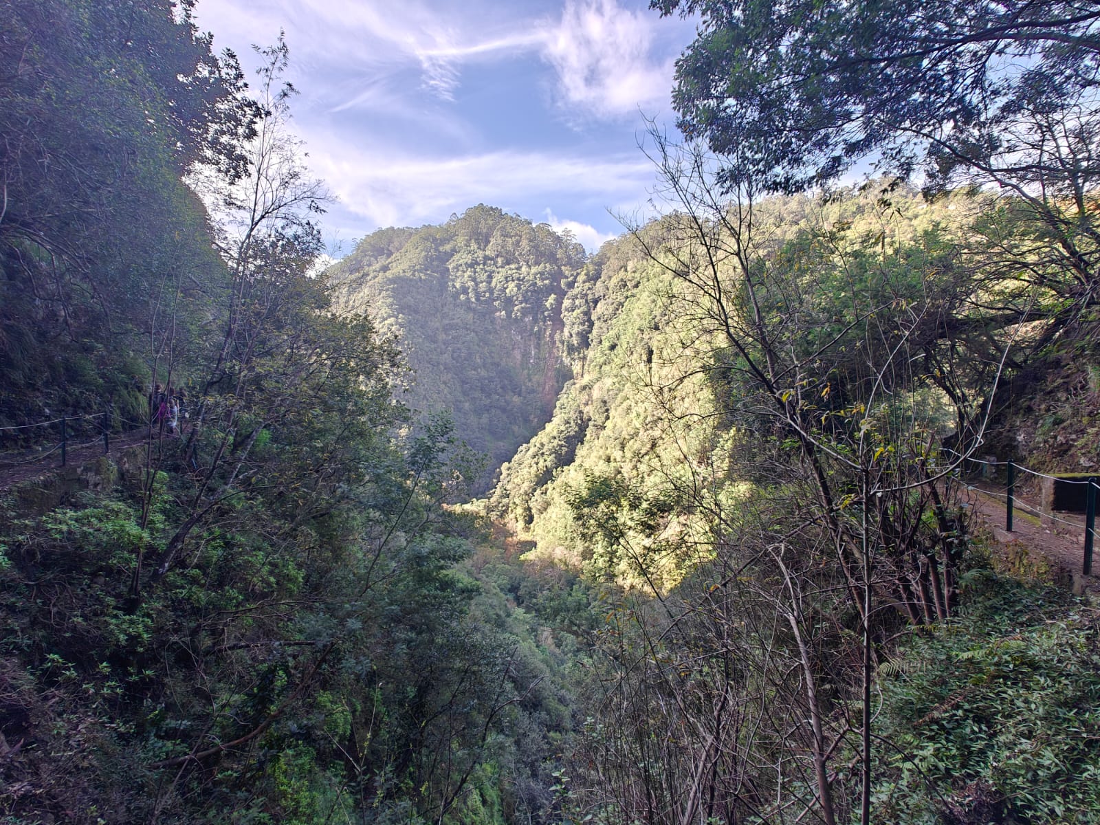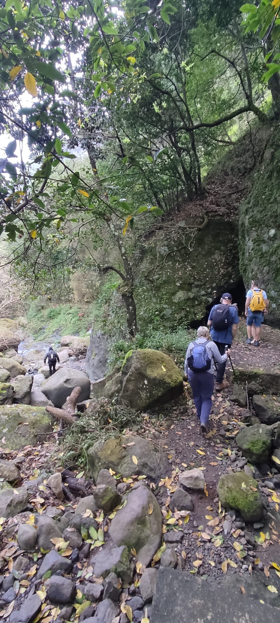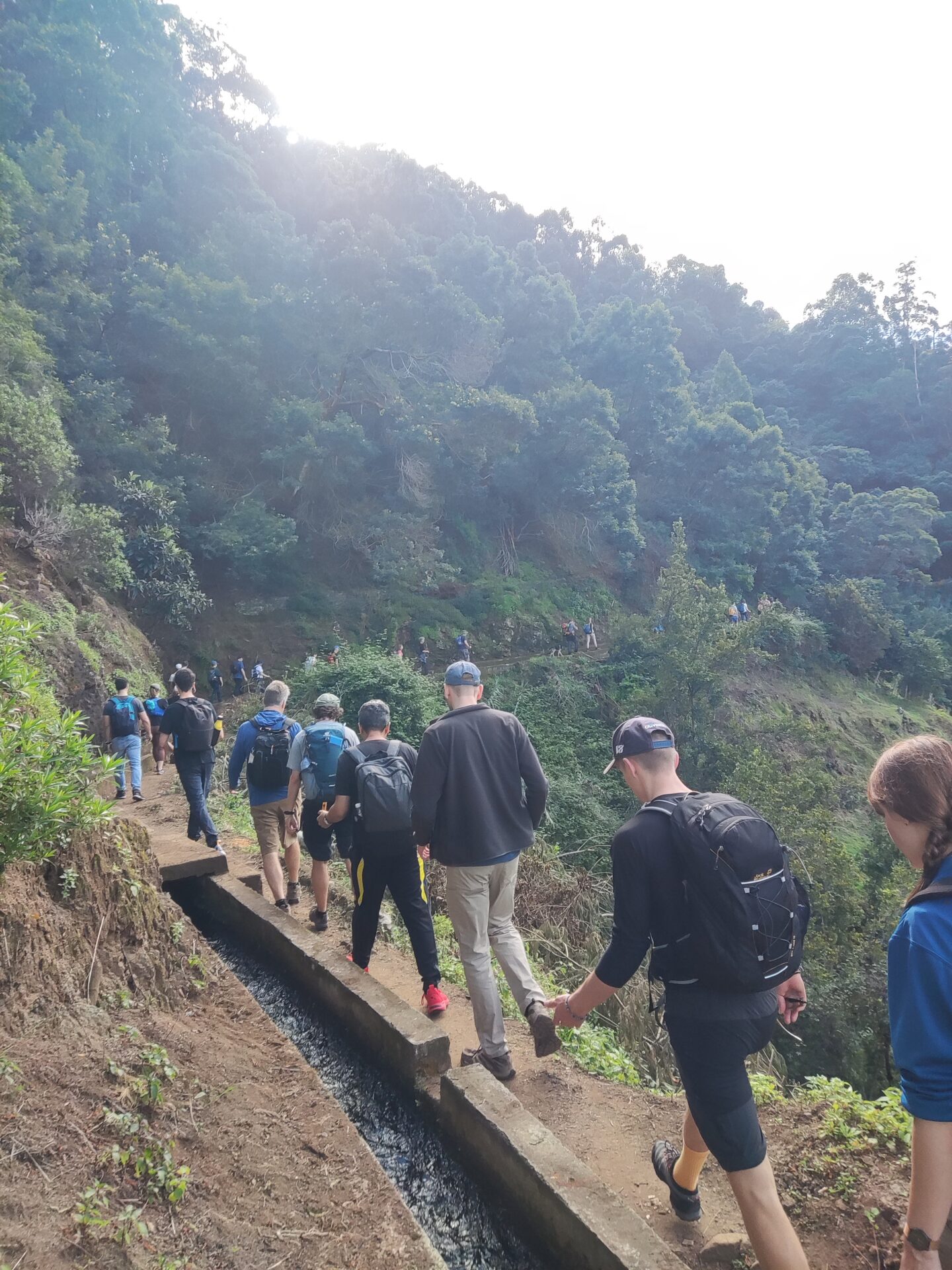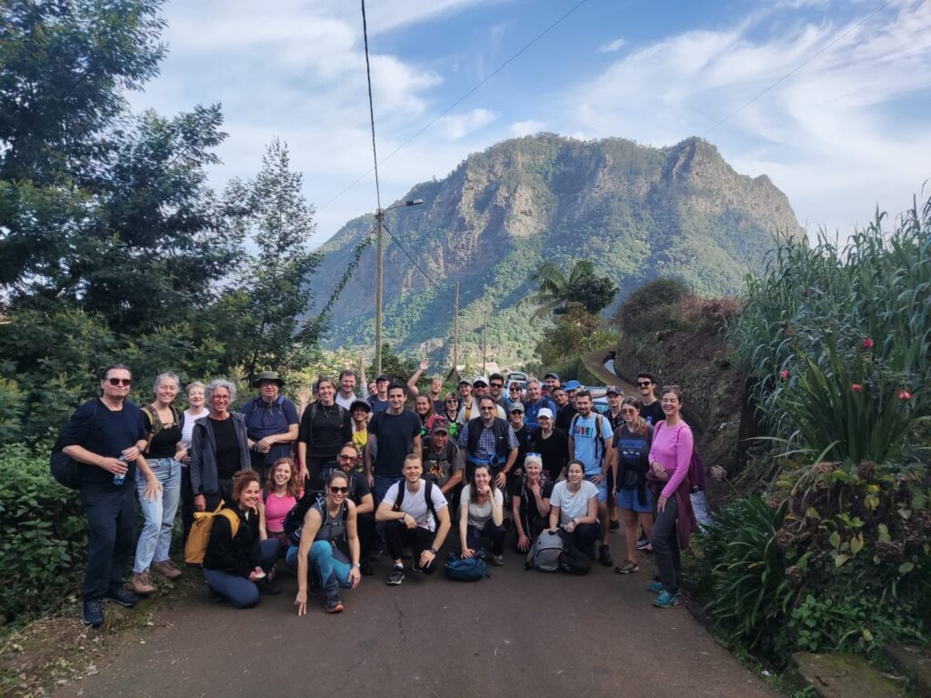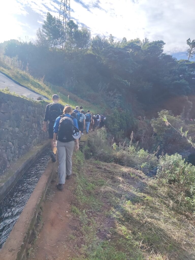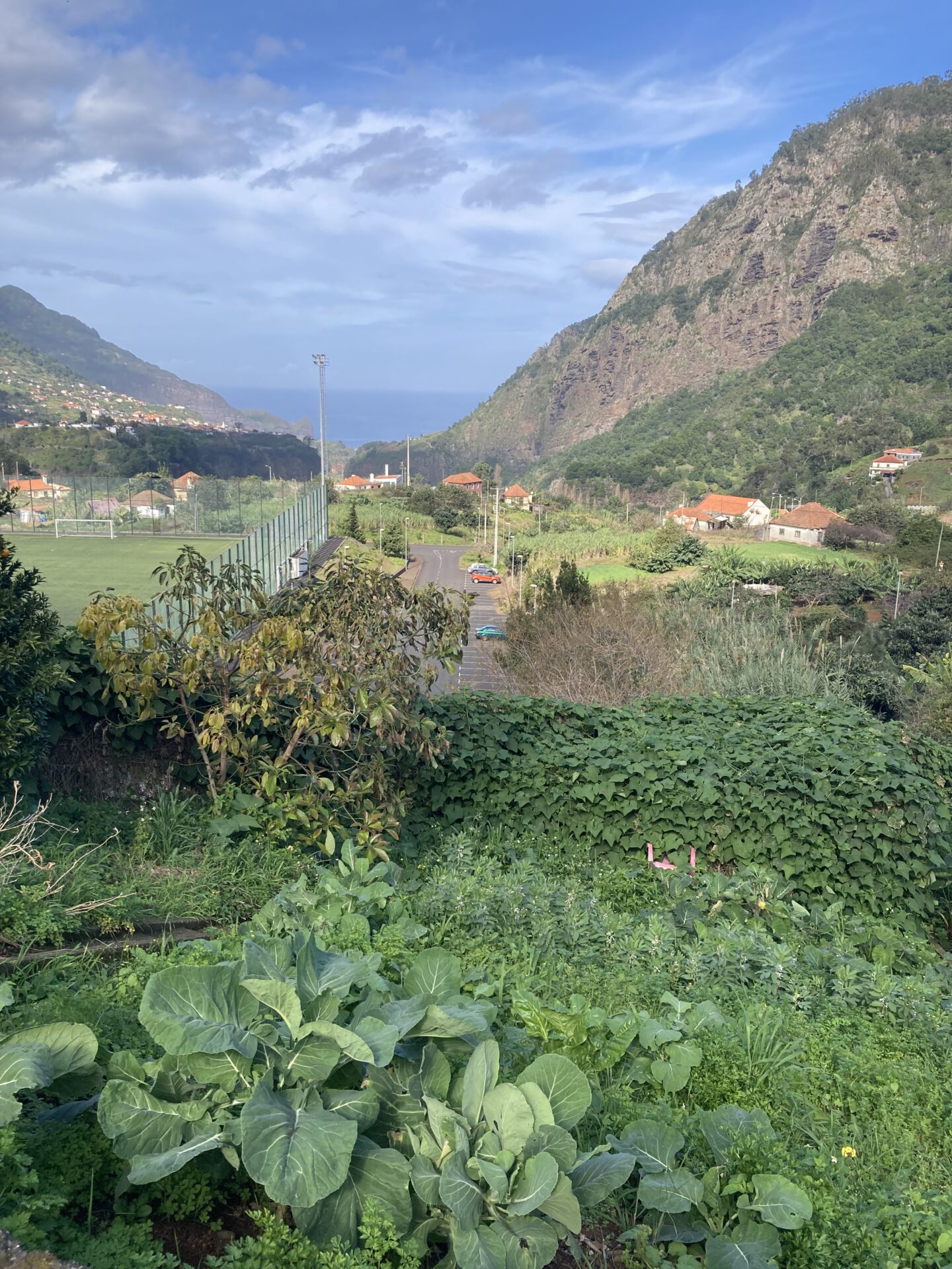 Heute war nicht nur wieder Sonntag, sondern auch Marathon-Tag in Funchal! Katharina hatte sich vor einigen Wochen im Neujahrsvorsatzfieber für den Mini-Marathon mit 8,3 Kilometern angemeldet und ich wollte sie anfeuern. Leider hab ich sie im Trubel nicht entdecken können, aber sie hat es geschafft 🥳 Ich musste aber auch schnell weiter, denn um 10 Uhr wurde ich gemeinsam mit zwei anderen Menschen von Patrick für den Community-Hike eingesammelt. Diesmal ging es in die Wildnis irgendwo zwischen „Porto da Cruz“ und „Faial“. Alex, ein deutscher digitaler Nomade, der diese Hikes wöchentlich plant, hatte sich für diese Wanderung eine Levada herausgesucht, die uns die ganze Strecke über begleitete. Auf einen schmalen Pfad schlängelten wir uns Kilometer für Kilometer am Bergrand entlang und genossen die atemberaubende Aussicht. Wir waren umringt von riesigen, begrünten Bergmassiven und entdeckten hier und da stürmische Wasserfälle. Auf einer kleinen Wiesen-Plattform grasten ein paar Schafe friedlich vor sich hin und später sollten wir eine Ziegenmutter mit Zicklein entdecken.