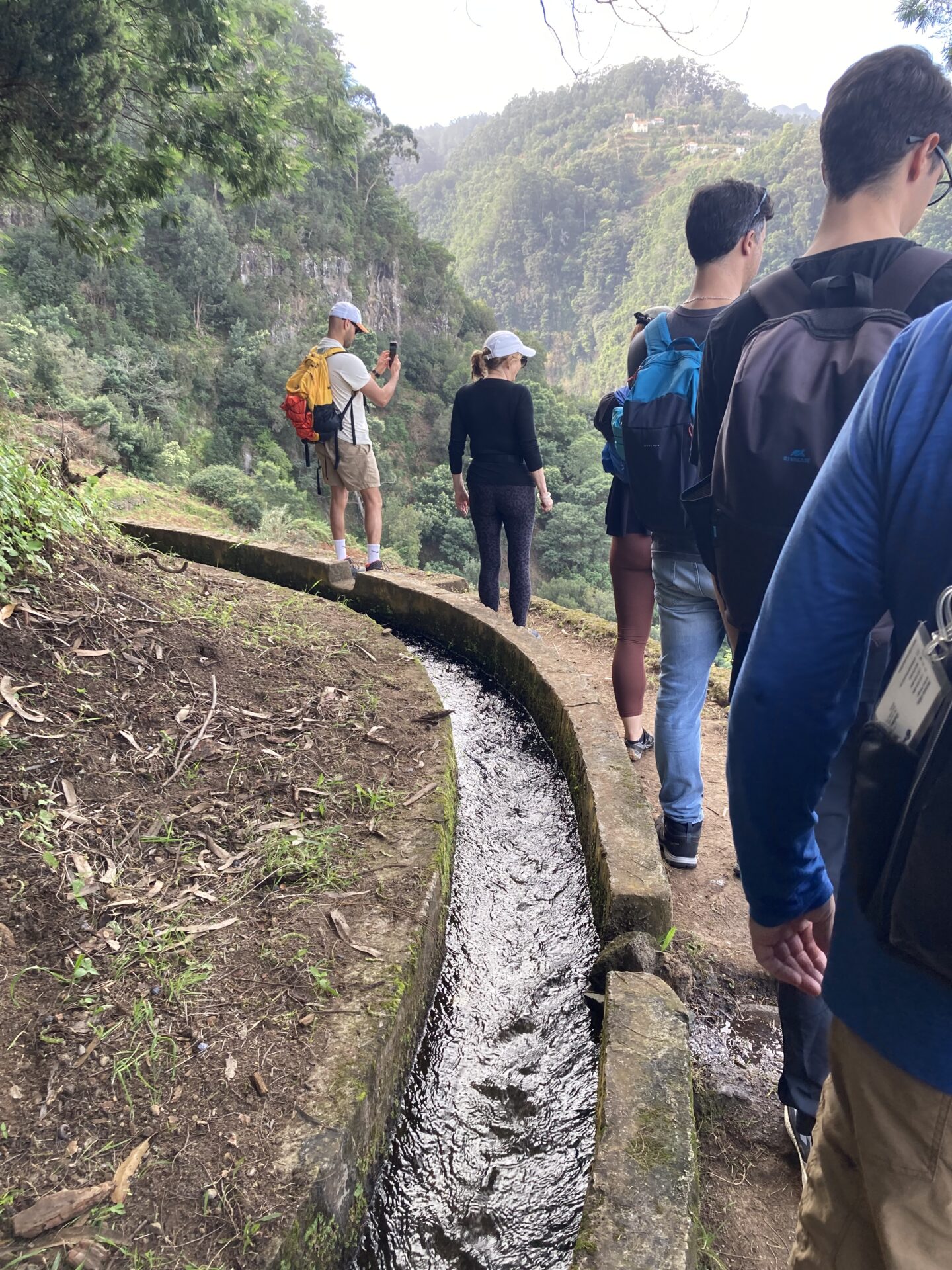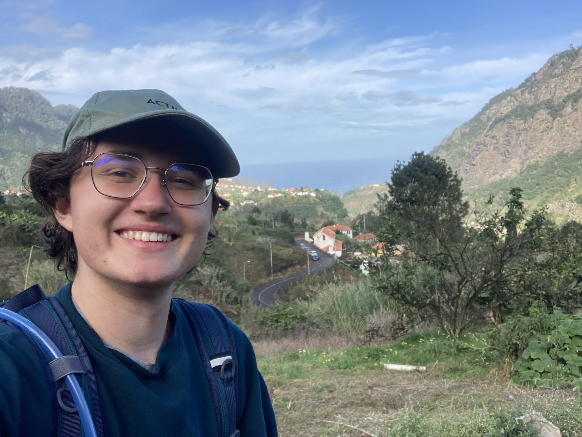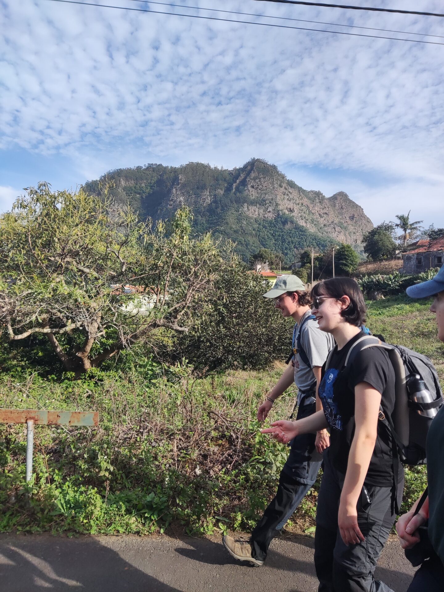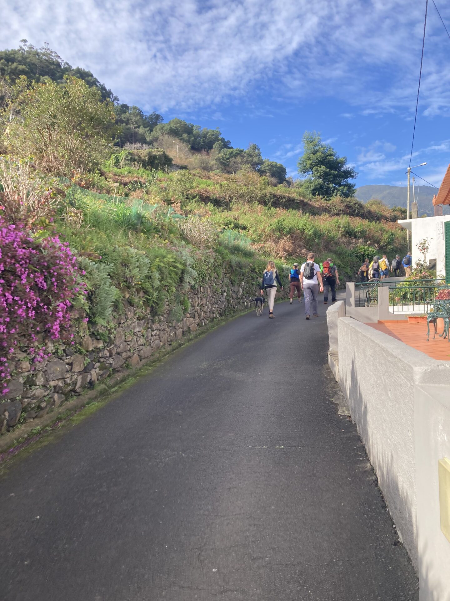 Heute war nicht nur wieder Sonntag, sondern auch Marathon-Tag in Funchal! Katharina hatte sich vor einigen Wochen im Neujahrsvorsatzfieber für den Mini-Marathon mit 8,3 Kilometern angemeldet und ich wollte sie anfeuern. Leider hab ich sie im Trubel nicht entdecken können, aber sie hat es geschafft 🥳 Ich musste aber auch schnell weiter, denn um 10 Uhr wurde ich gemeinsam mit zwei anderen Menschen von Patrick für den Community-Hike eingesammelt. Diesmal ging es in die Wildnis irgendwo zwischen „Porto da Cruz“ und „Faial“. Alex, ein deutscher digitaler Nomade, der diese Hikes wöchentlich plant, hatte sich für diese Wanderung eine Levada herausgesucht, die uns die ganze Strecke über begleitete. Auf einen schmalen Pfad schlängelten wir uns Kilometer für Kilometer am Bergrand entlang und genossen die atemberaubende Aussicht. Wir waren umringt von riesigen, begrünten Bergmassiven und entdeckten hier und da stürmische Wasserfälle. Auf einer kleinen Wiesen-Plattform grasten ein paar Schafe friedlich vor sich hin und später sollten wir eine Ziegenmutter mit Zicklein entdecken.