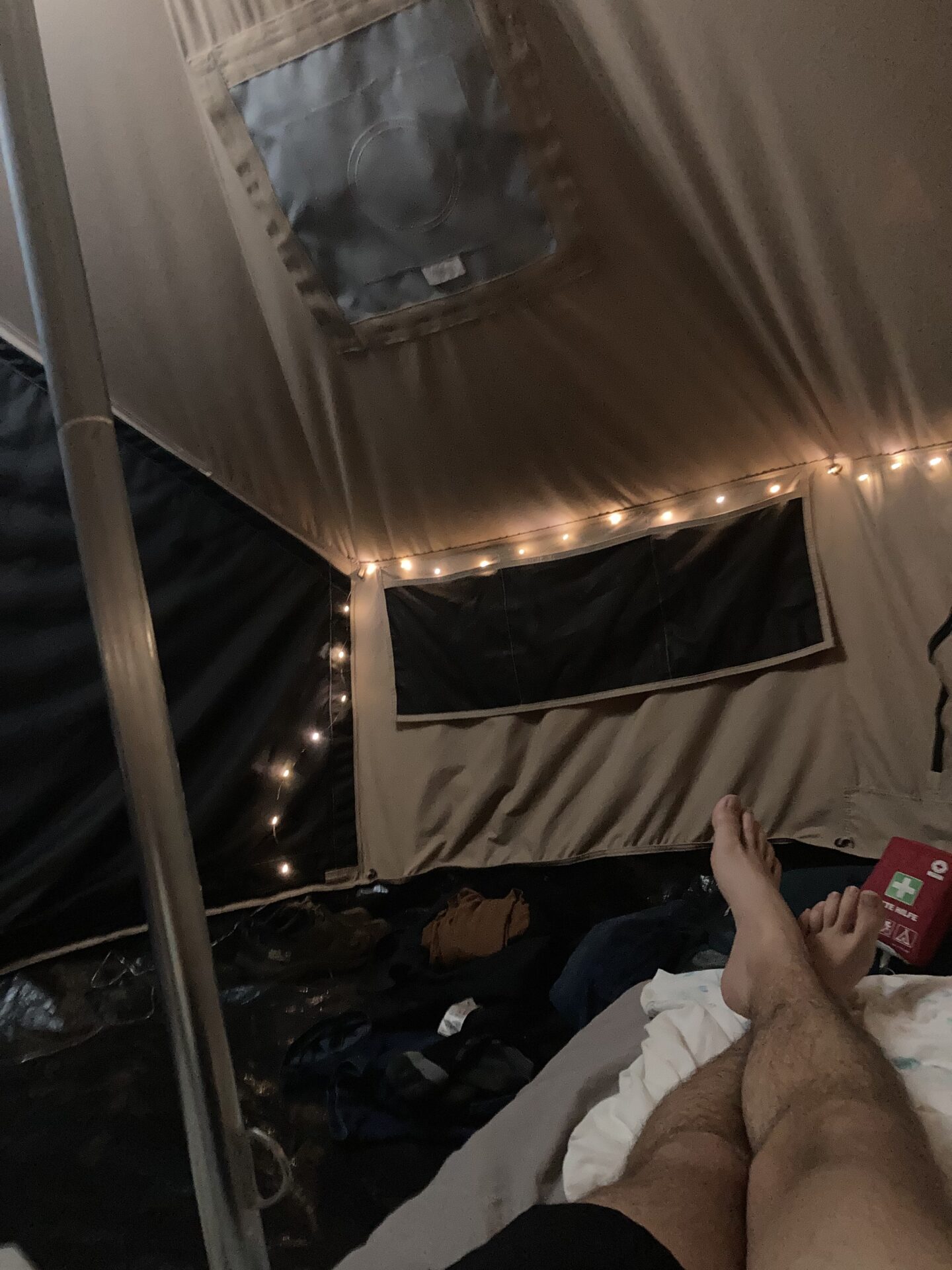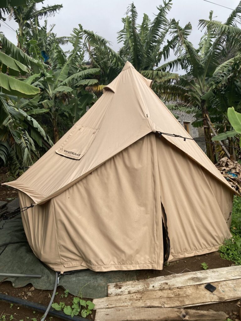 Boyd zeigte mir mein Zuhause der nächsten 2 Wochen: ein 8-eckiges, sehr robustes Zelt mit Matratze und Lichterkette mitten in den Plantagen. Ich verstaute mein Hab und Gut und bezog jeglichen Bettbezug.
