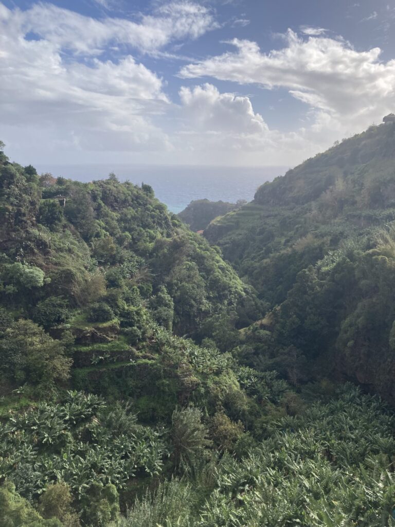 Mein großer Rucksack wurde im Bauch des Busses verstaut und los ging die Fahrt. Das Problem war nur, dass ich nicht wusste, wo ich genau raus musste. Ich war mir nicht sicher, ob und wann ich die Stop-Taste drücken müsse und so landete ich nach einem Umstieg in “Ribeira Brava” mitten auf der Straße im Nirgendwo. Hier gab es noch nicht mal ein Haltestellenschild, aber nachdem ich gedrückt hatte, wurde ich genau hier abgesetzt. Ich fragte einen Einheimischen nach dem Weg und stand kurze Zeit später auf dem, wie sich herausstellen sollte, falschen Grundstück. Ich rief Boyd, den Host meiner Arbeitsstelle, an und er leitete mich mit Video-Telefonat zu seinem Haus, wo mich seine Mutter Valin in Empfang nehmen sollte. Leider fand ich jedoch keine Klingel und natürlich fing es genau in diesem Moment an, zu stürmen und zu regnen. So stand ich einen Moment lang im Regen, bis Valin mich entdeckte und mich hinein in ihr Zuhause ließ.