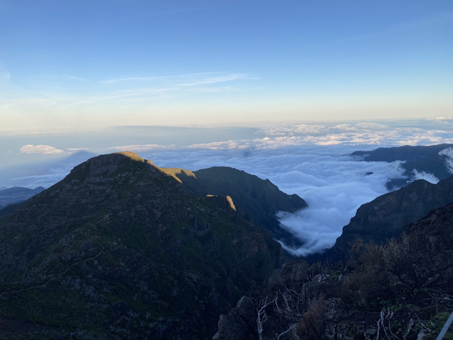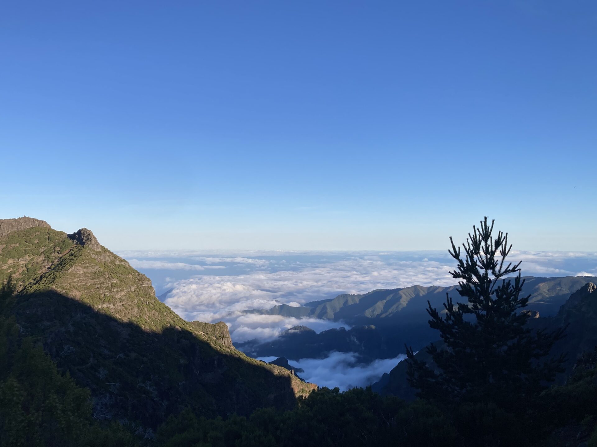 Kurze Zeit später verschwanden wir zu dritt in einem Supermarkt, kauften kurz einige Kleinigkeiten ein und ließen uns im dazugehörigen Café nieder. Um 15:30 sollte uns von hier aus Daniele abholen – heute war wieder Sonntag und somit stand ein weiterer Community-Hike an. Er hatte sich dazu bereit erklärt, uns für die knappe Stunde mit dem Auto mit zu nehmen. Das war eine aufregende Fahrt mit der steilsten Straße, die ich jemals mit dem Auto überwinden hatte. Wir fuhren tatsächlich einmal die komplette östliche Küste ab, bis wir mehr oder weniger am Fuße des “Pico Ruivo” ausstiegen. Hier stießen wir auf den Rest der Gruppe und machten uns auf, zur Spitze des höchsten Bergs Madeiras.