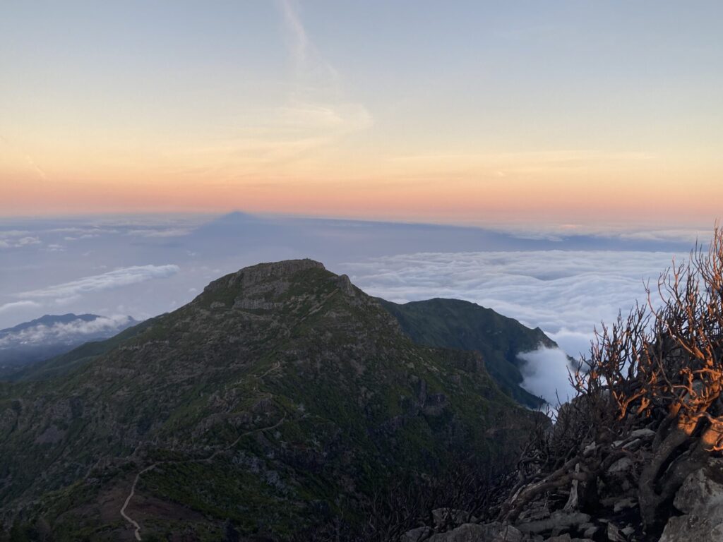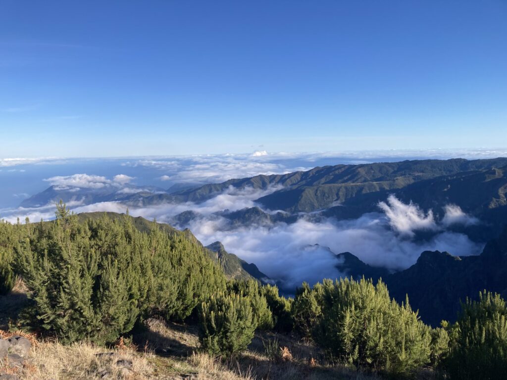 Uns erwartete mal wieder ein wahnsinniger Ausblick: auf der linken Seite erblickten wir schroffe, steile Bergmassive, zu denen unter anderem auch der “Pico do Arieero” zählt, während unsere Blicke auf der linken Seite nur über grüne Täler und Bergzungen schweifte.