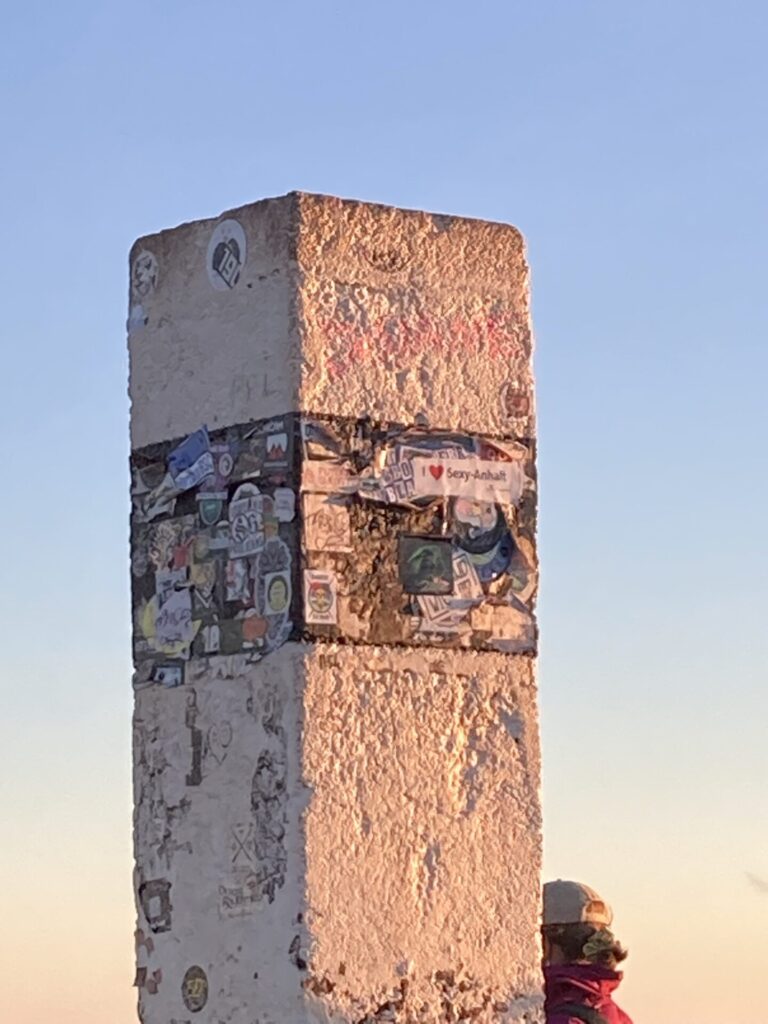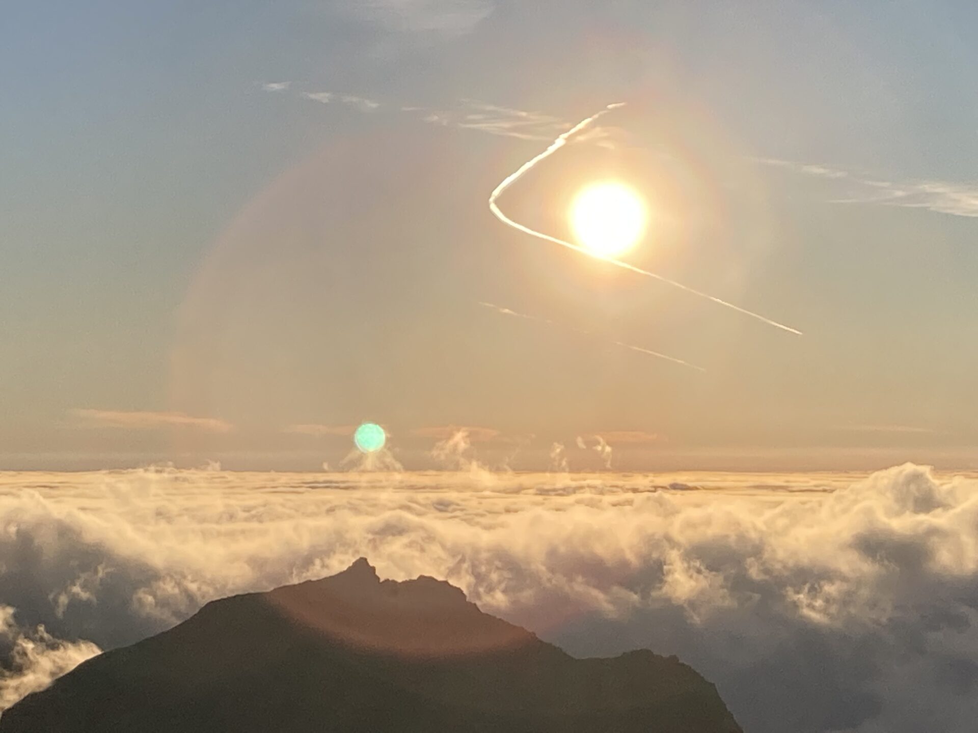 Dieter und Marie packten unser Abendbrot aus, was wir in dieser Atmosphäre genießen wollten: Brötchen, Käse und Wein. Der Sonnenuntergang war wirklich ein wunderschönes Spektakel, was ich noch lange in schöner Erinnerung behalten werde. Ein Mitglied der Gruppe setzte sich auf den Gipfelstein und war somit für einen Moment der höchste Punkt der Insel.