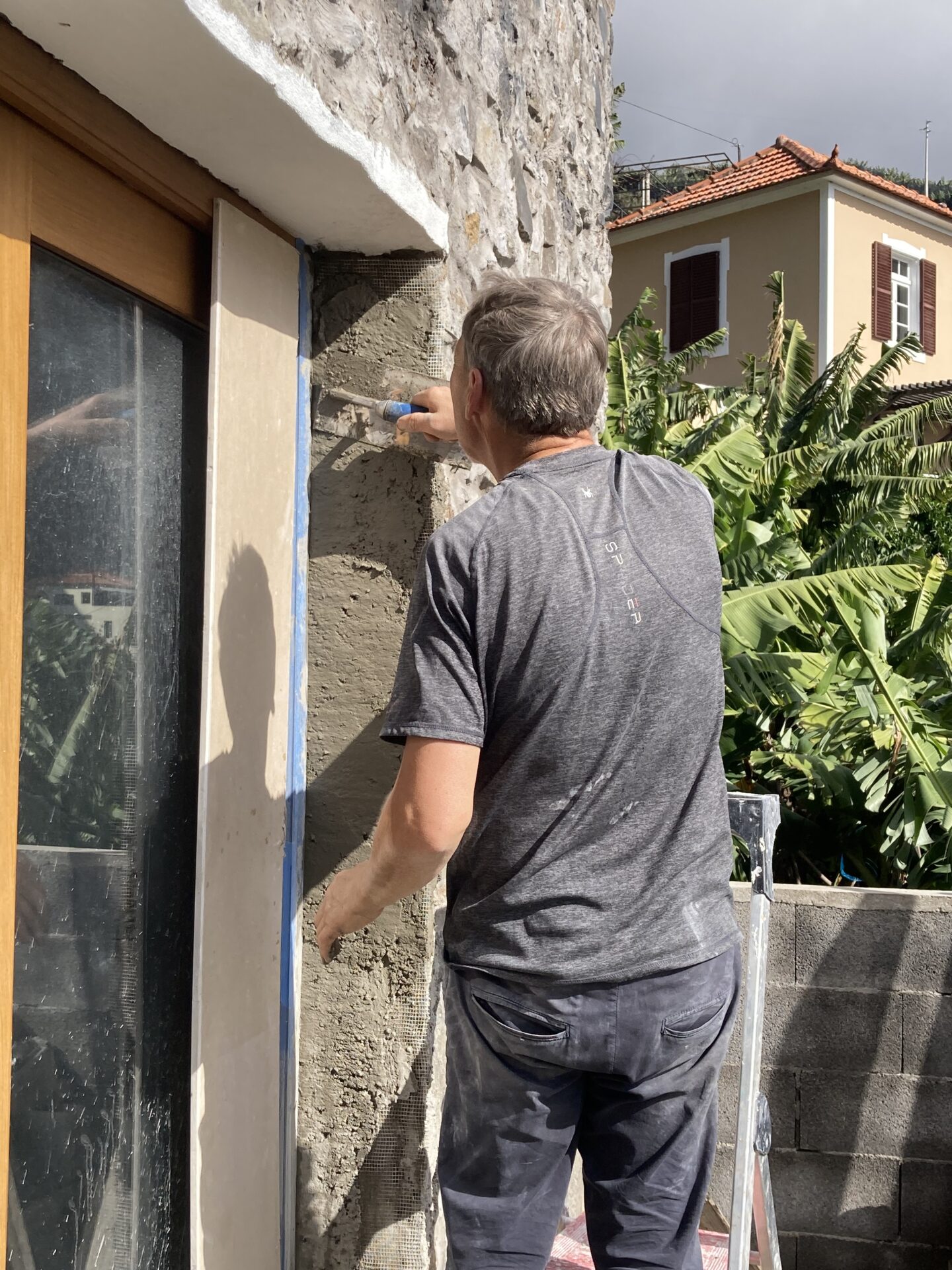 Auch heute stand das Arbeiten im Bungalow im Vordergrund. Ich rührte wieder einmal eine Menge Zement, Gips und Beton an, spachtelte im Dachgiebel herum und füllte Hauswand-Ecken aus. Vor allem das Füllen der Ecken erinnerte sich stark an das Bauen von Sandburgen am Strand, weil ich die Masse mit den Händen in jede kleine Ritze drücken musste.