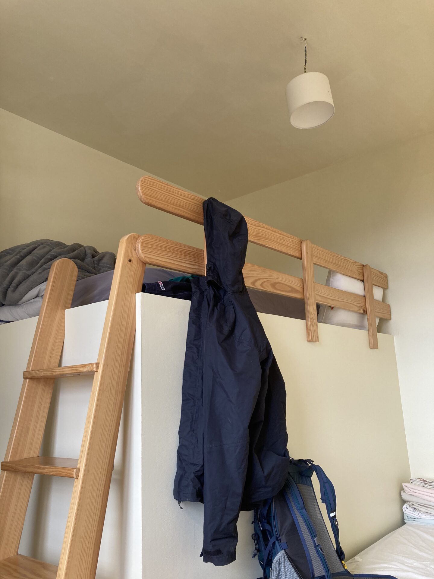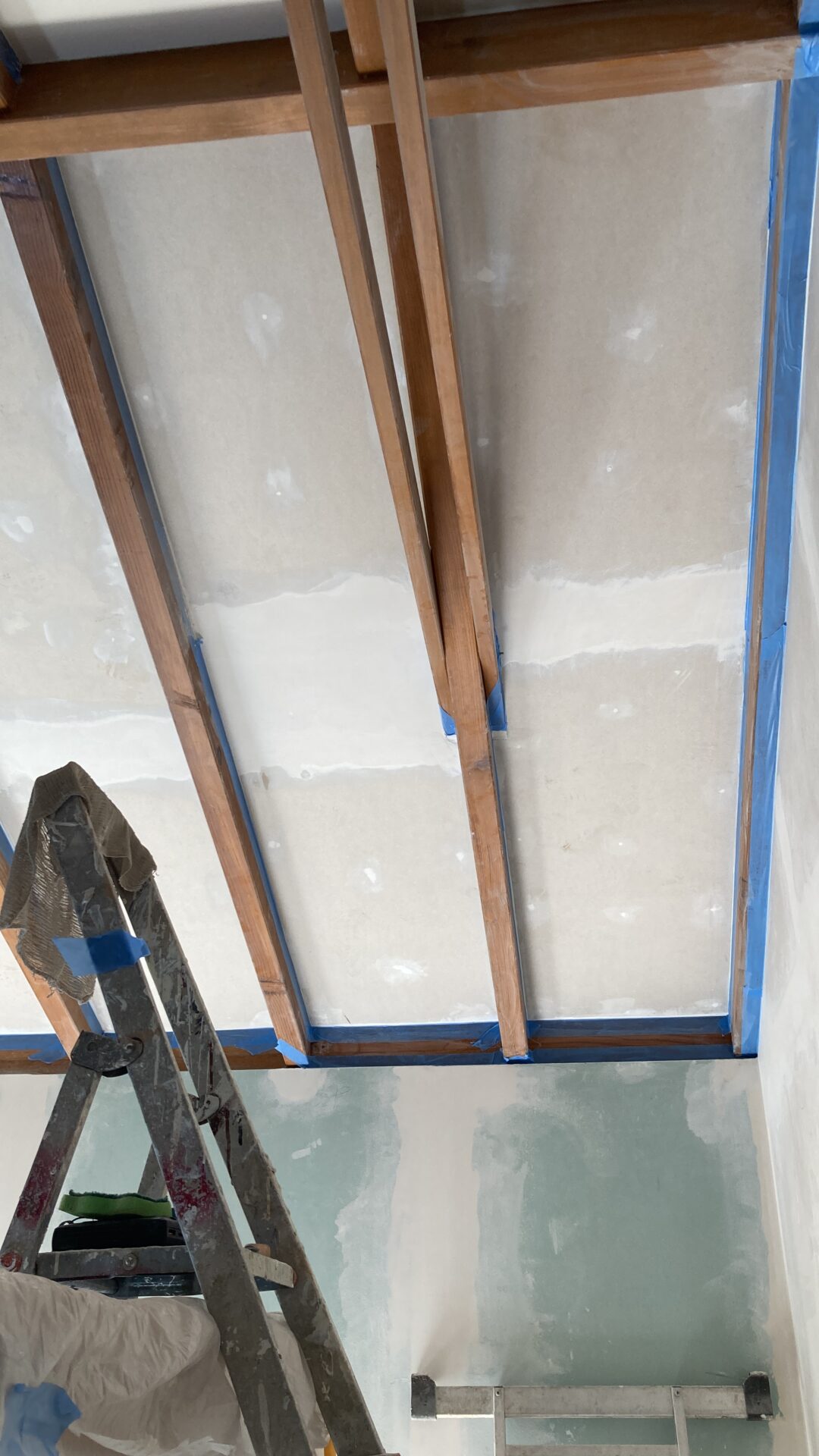 Den heutigen Arbeitstag verbrachte ich damit, die Balken unter dem Dach des Bungalows mit Tape abzukleben, damit sie später beim Streichen nicht beschmutzt werden würden.