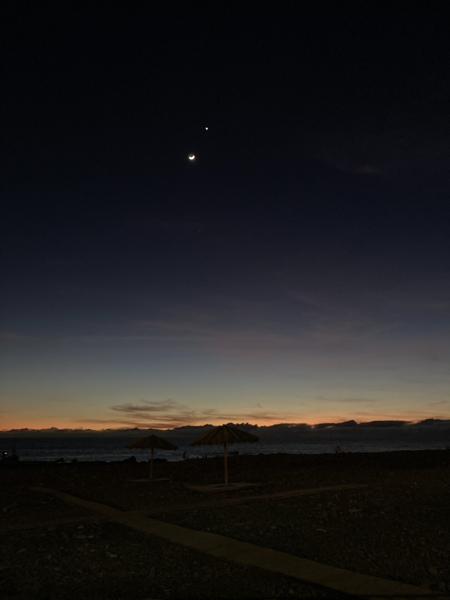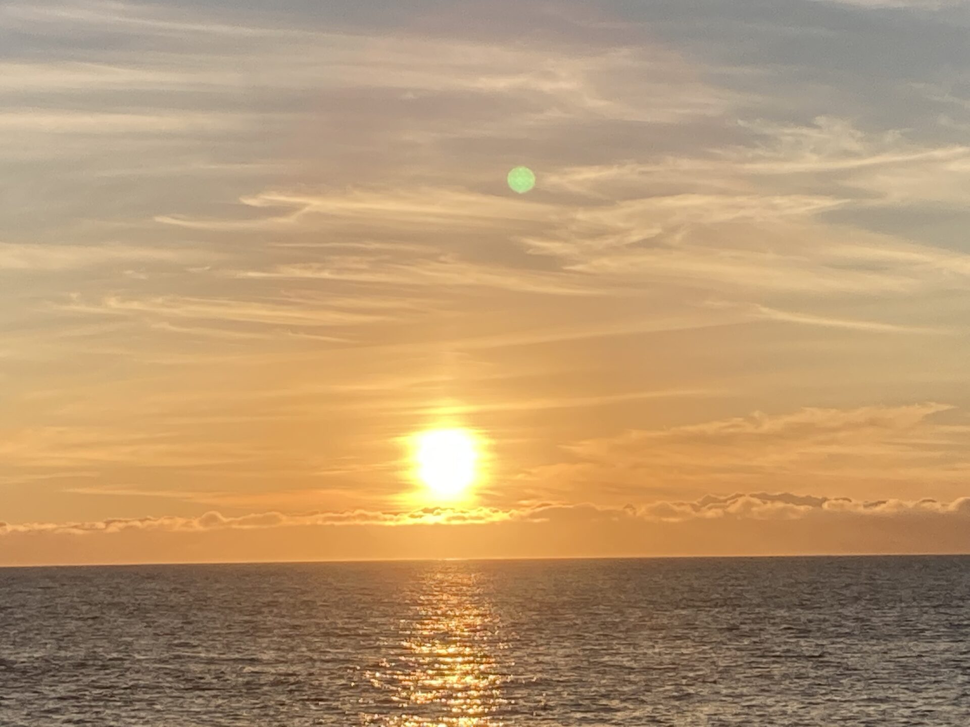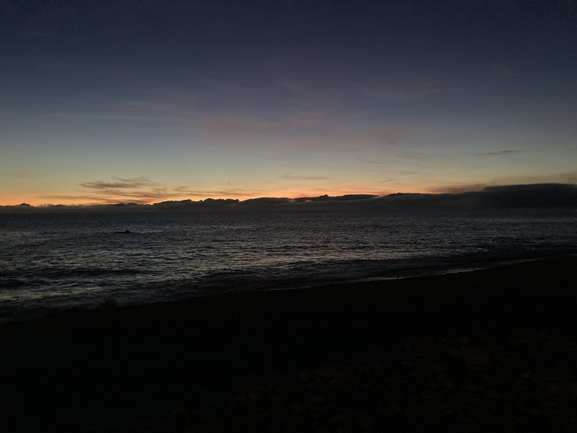 So langsam ging dann aber auch die Sonne unter und alle beobachteten gespannt, wie sich der Himmel und die Wolken verfärbten und der rote Ball im Meer versank. Stets per Video dabei – meine Mum. Sie begleitete mich auch auf meinem steilen Heimweg – 40 Minuten nur bergauf, meist an der Hauptstraße entlang.