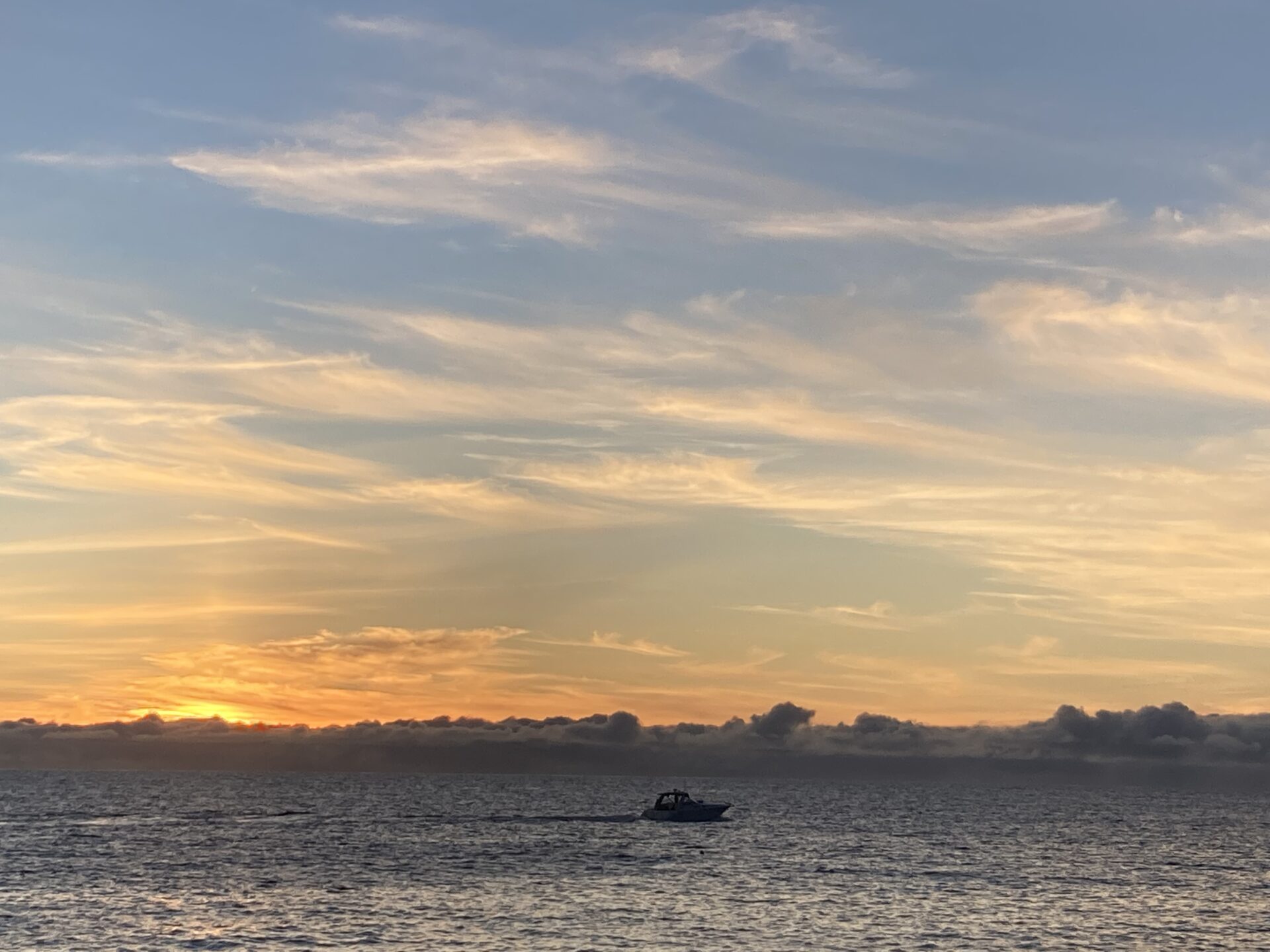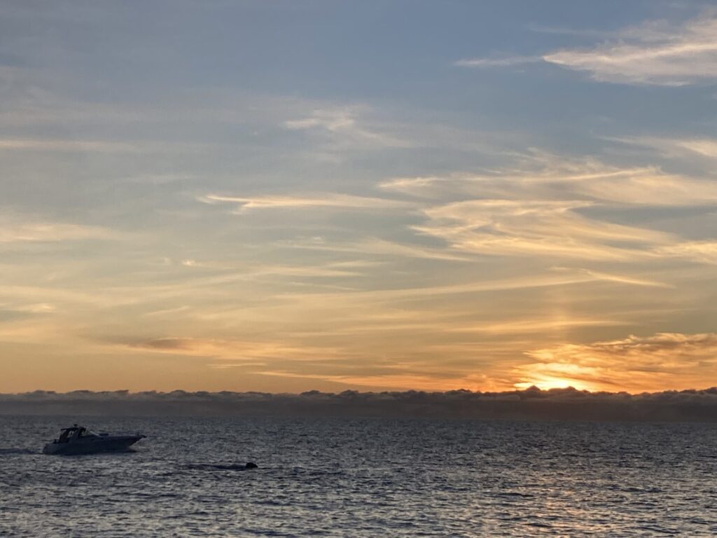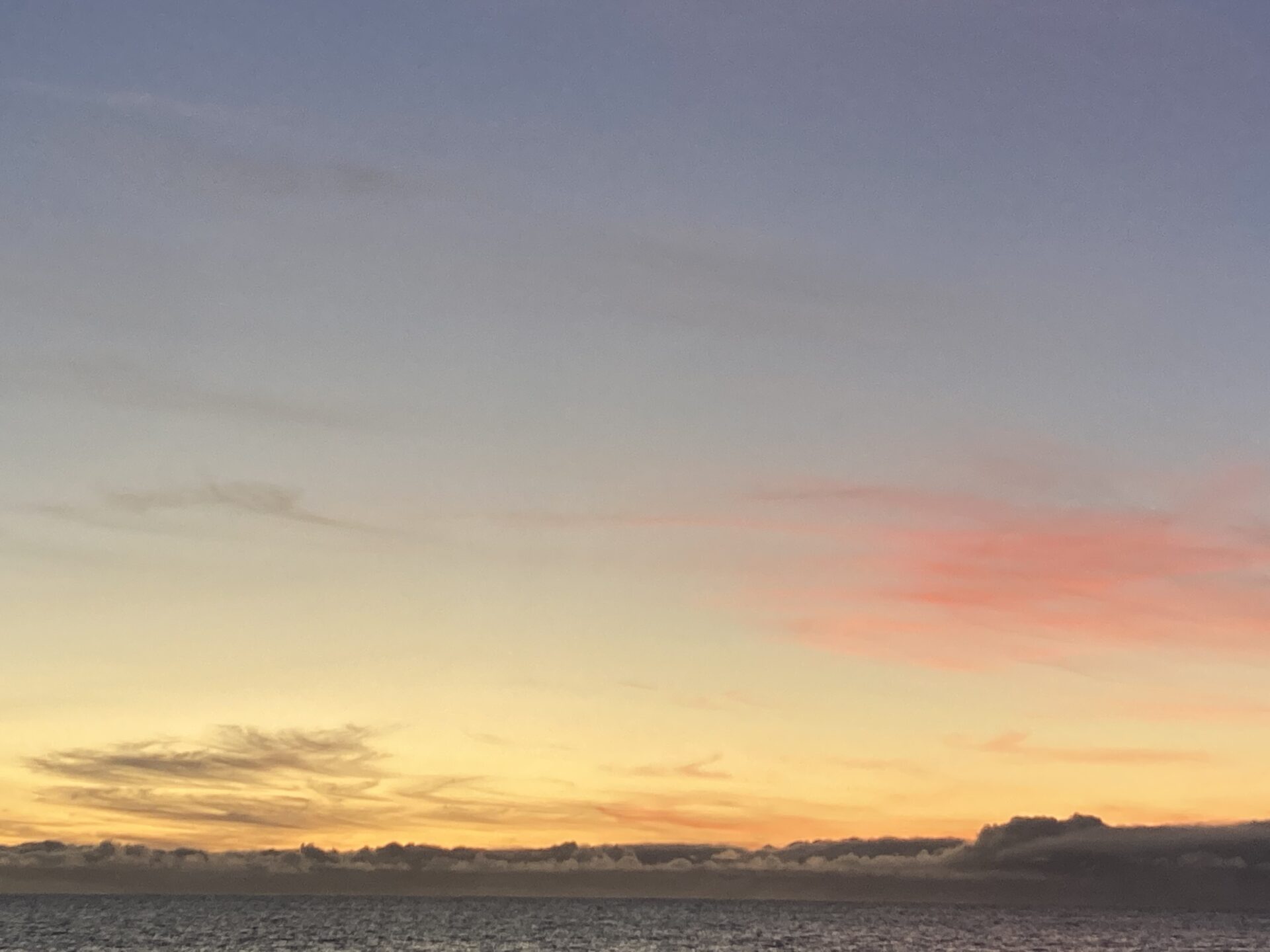 So langsam ging dann aber auch die Sonne unter und alle beobachteten gespannt, wie sich der Himmel und die Wolken verfärbten und der rote Ball im Meer versank. Stets per Video dabei – meine Mum. Sie begleitete mich auch auf meinem steilen Heimweg – 40 Minuten nur bergauf, meist an der Hauptstraße entlang.
