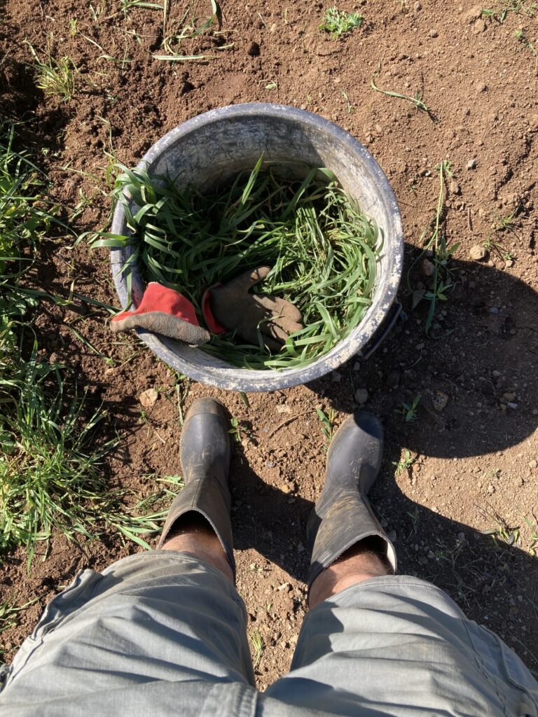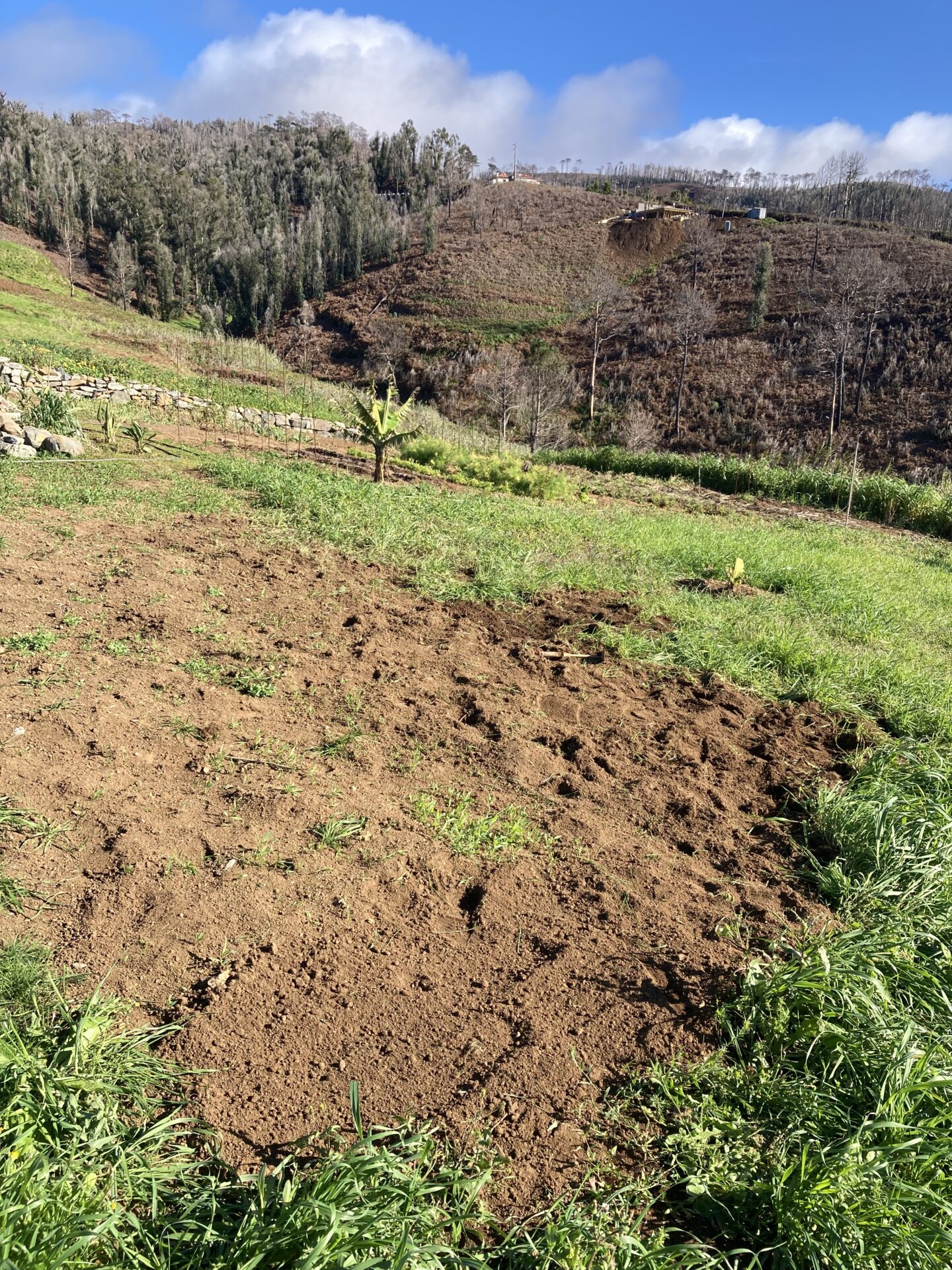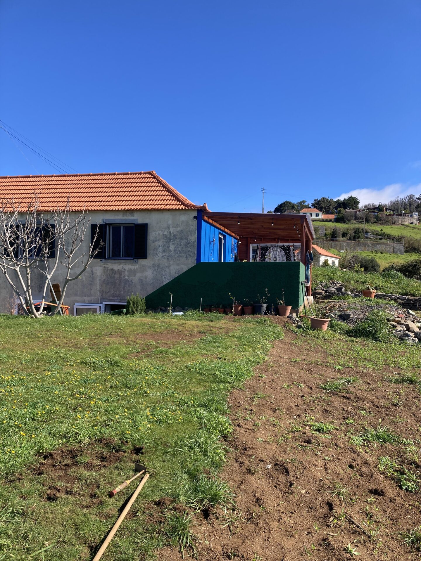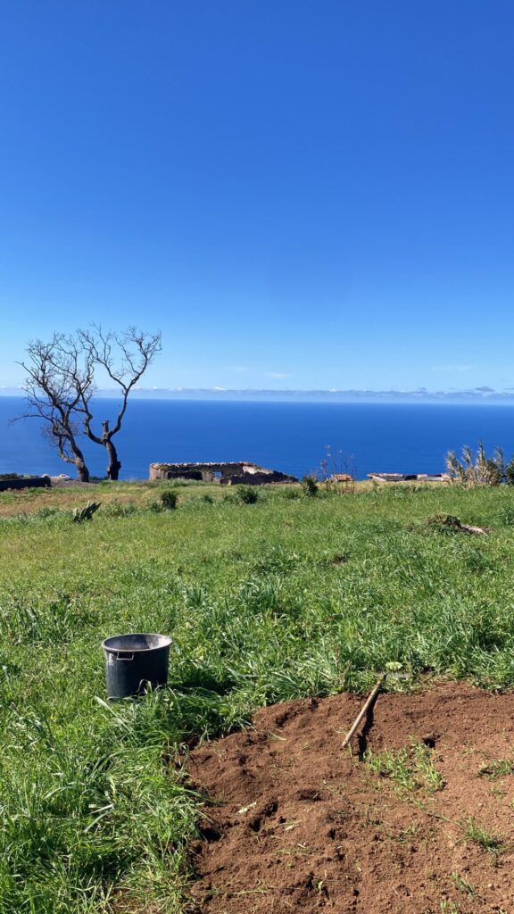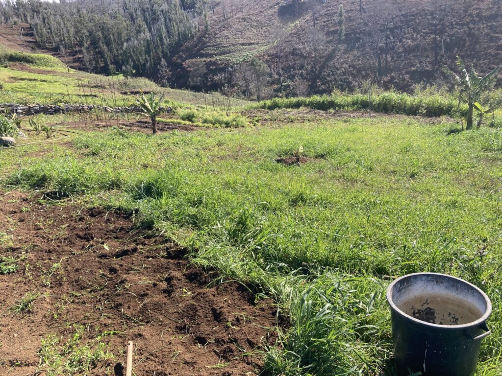 Nach einem selbstbereiteten Frühstück führte mich Tomaš durch den Garten, um mir zu zeigen, woran ich die nächsten Tage arbeiten könne. Sofort begann ich eine mir gezeigte Wiesenfläche von Unkraut zu befreien, damit darauf in Zukunft neues Gras gepflanzt werden kann. Ich genoss die Sonne, die tolle Aussicht, das Meckern der in der Nähe grasenden Ziegen und die leise Musik der nahegelegenen Baustelle. Hier und da streifte eine der beiden Katzen umher und wollte gestreichelt werden.
