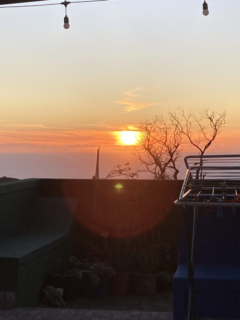 Im Anschluss machte ich es mir in einer der drei Hängematten mit einem hier gefundenen Buch gemütlich, telefonierte mit meinen Eltern und lief bis fast an die Klippen, um mir den Sonnenuntergang anzusehen.