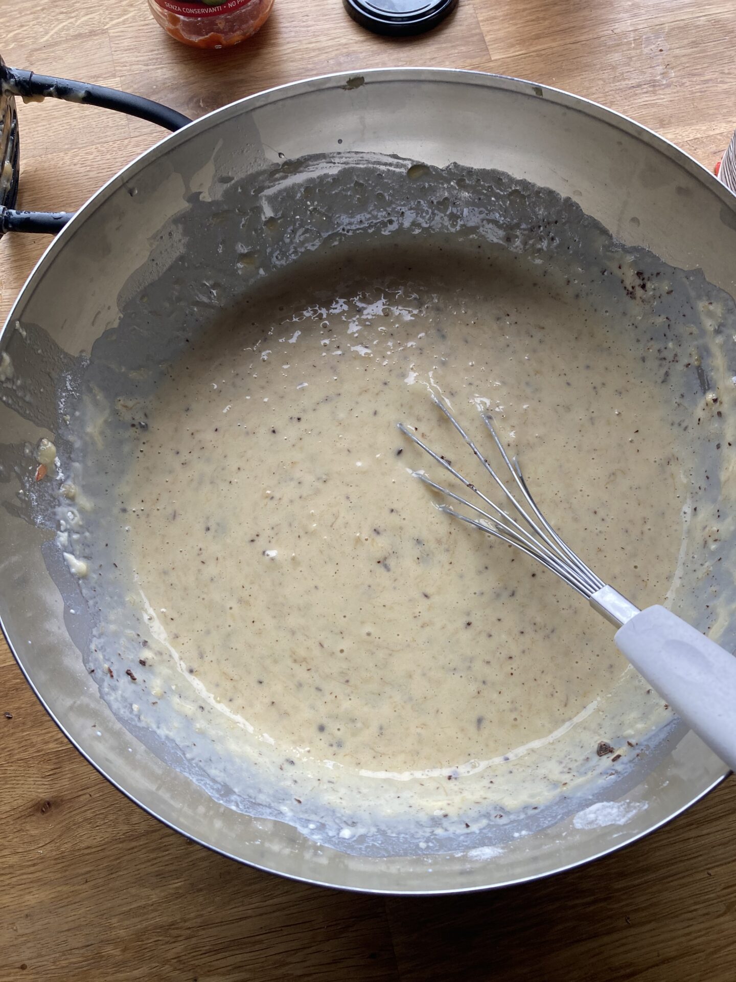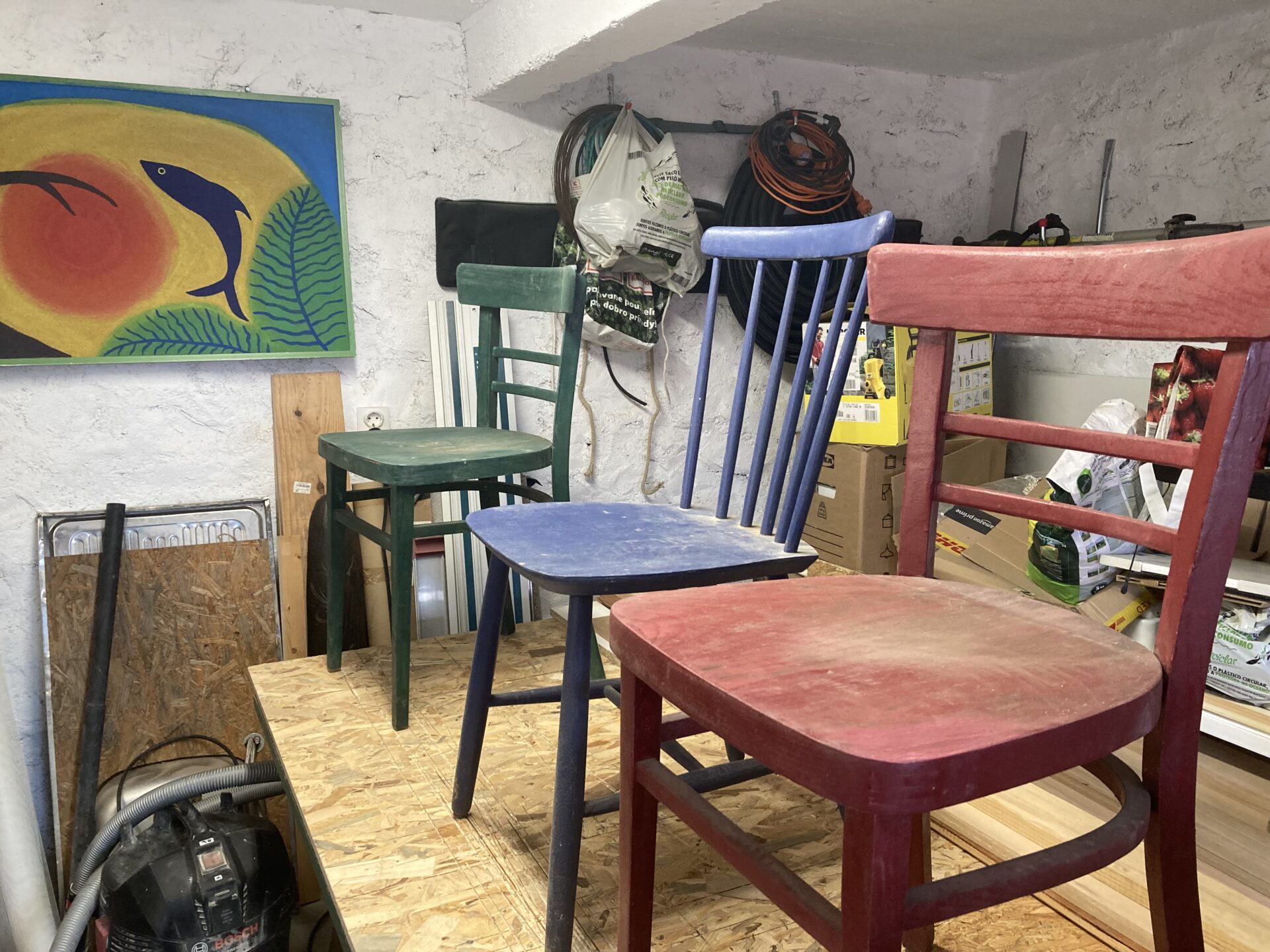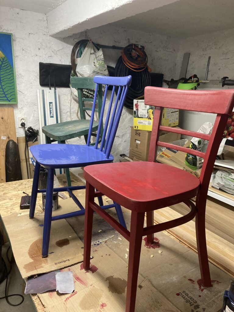 Aus diesem Grund arbeitete ich heute nicht im Garten, sondern schleifte und bemalte Holzstühle für die Küche. Am Nachmittag schmiss ich alle möglichen Zutaten, inklusive einiger überreifer Bananen, in eine Schale und backte einen wirklich sehr saftigen Bananenkuchen mit Schokostückchen. Ja, ich weiß – der Kuchen sieht nicht sonderlich spektakulär aus, aber schmecken tut er wirklich vorzüglich und ich werde noch viele Tage etwas von ihm haben.