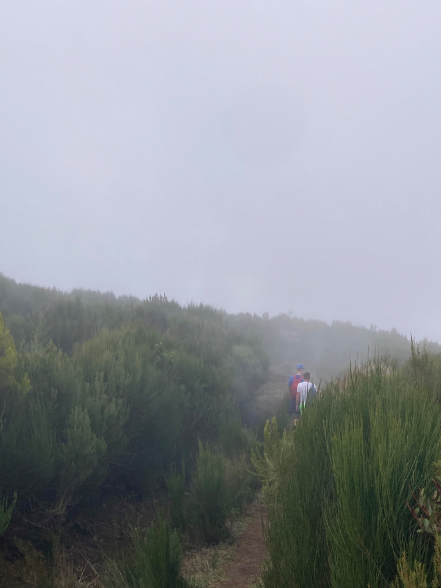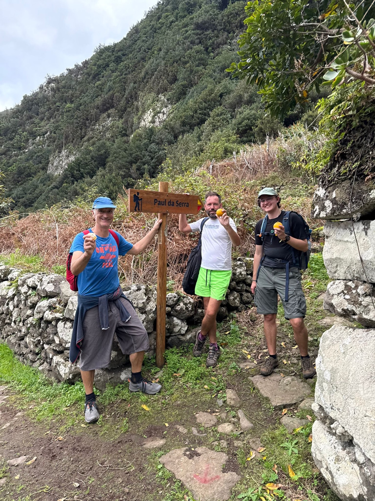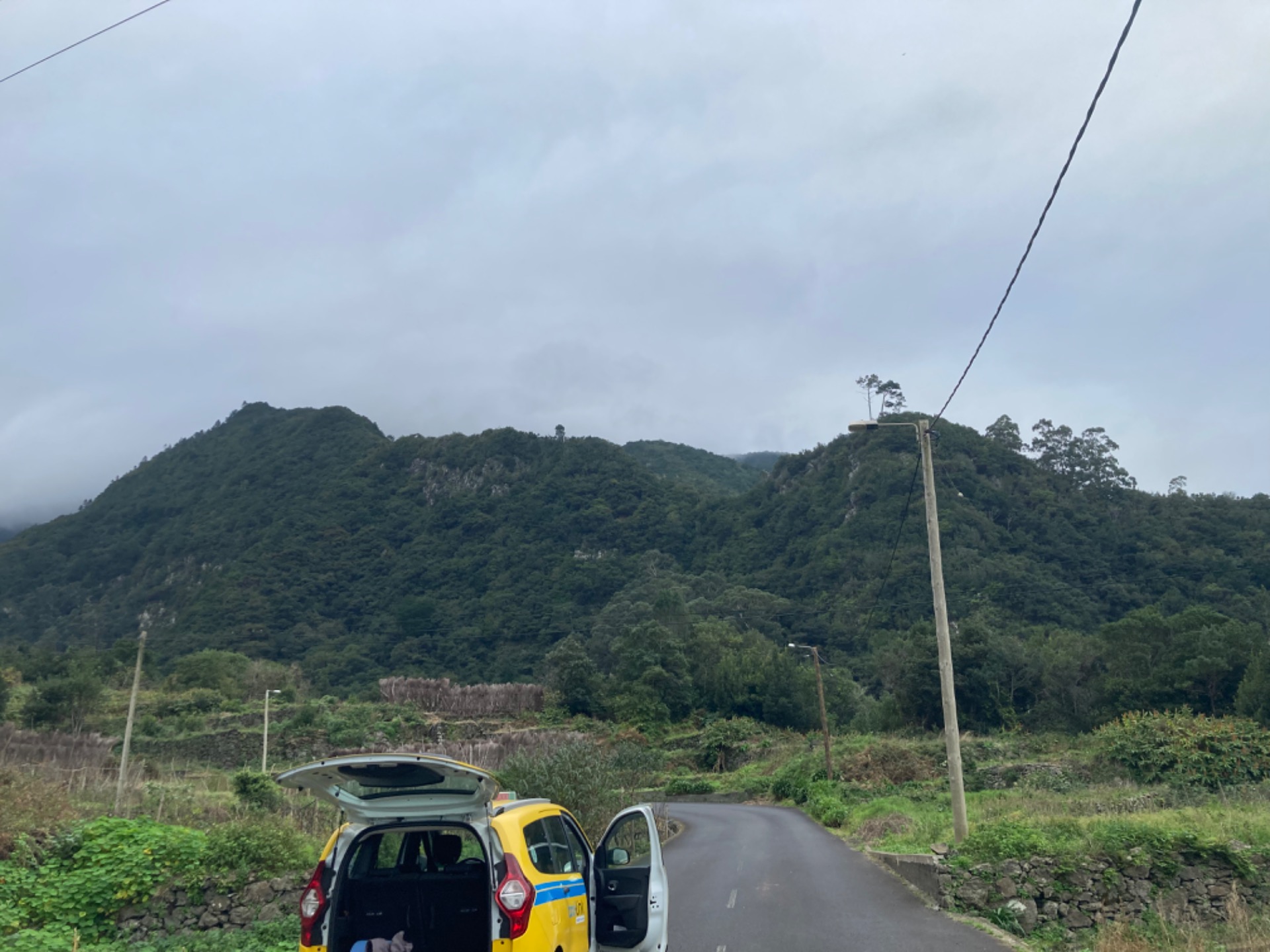Nach einem schnellen Frühstück in einem Café des Einkaufszentrum mit frischgepresstem Orangensaft (mein bisher 3.) , belegtem Croissant und Sandwiches ging es für mich schon auf zum Treffpunkt für den heutigen Hike. Auch diese Wanderung wurde über die lokale Community, in deren WhatsApp Gruppe ich bin, organisiert und sollte heute durch den Nordwesten der Insel, bei Seixal, verlaufen. Neil, dessen Idee der Hike war, hatte einen befreundeten Taxifahrer gebucht und so saßen wir zu viert um kurz nach 13 Uhr im Taxi nach Seixal. Um die Fahrkosten zu decken, zahlte jeder 25 Euro für den gesamten Ausflug. Wir erklommen immer mehr Höhenmeter, bis uns Raff, der Fahrer, auf 1420m Höhe absetzte. Unser Hike sollte auf der großen und einizigen Hochebene Paul da Serra beginnen. Leider wurde vorher nicht gut kommuniziert, welchen Charakter die Wanderung haben sollte und so führte der gesamte Hike bergab! Es begann recht harmlos, aber nach einiger Zeit wurde der Weg so steil und vor allem rutschig, dass ich mehrere Male ausrutschte und sogar einmal hinfiel. Die beiden anderen Männer schien sowohl der Weg als meine Befangenheit mit diesem Terrain jedoch wenig zu stören und sie waren wirklich schnell unterwegs, sodass sich mein Abstand zu ihnen recht schnell vergrößerte. Nach einiger Zeit konnte ich sie nur noch aus der Ferne hören uns fand mich in einer wirklich bizarren Natur wieder. Wir waren so hoch, dass wir literarisch durch die Wolken abstiegen, deshalb war der Weg auch so rutschig und wird, so wurde mir nach einiger Zeit berichtet, “the slippy hike” genannt. Die Landschaft gleichte einer Steppe oder Tundra und umhüllte mich mit Nichts als Stille. Nach circa einer Stunde begannen meine Beine vor Überanstrengung zu zittern und ich hätte wirklich eine Pause gebrauchen können. Irgendwann konnte ich aufschließen und mich eine Zeit lang mit James, einem Geologen und Engländer, der schon in vielen Ländern gelebt hat, unterhalten. Neil war uns viele Meilen voraus und wartete mit Raff und seinem Taxi am Ende des Hikes auf uns. 2,5 Stunden später und 1200 Meter tiefer waren wir endlich angekommen und ich durfte eine wirklich vorzügliche Orange eines wild wachsenden Orangenbaumes verspeisen. Dank eines Wanderschildes erfuhr ich, dass wir soeben 8 Kilometer und über 1000 Höhenmeter hinter uns gebracht hatten und die angedachte Zeit hierfür 3,5 Stunden gewesen wären.