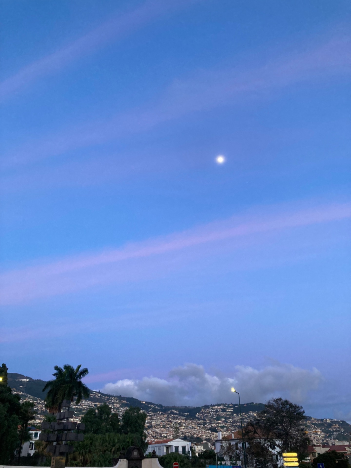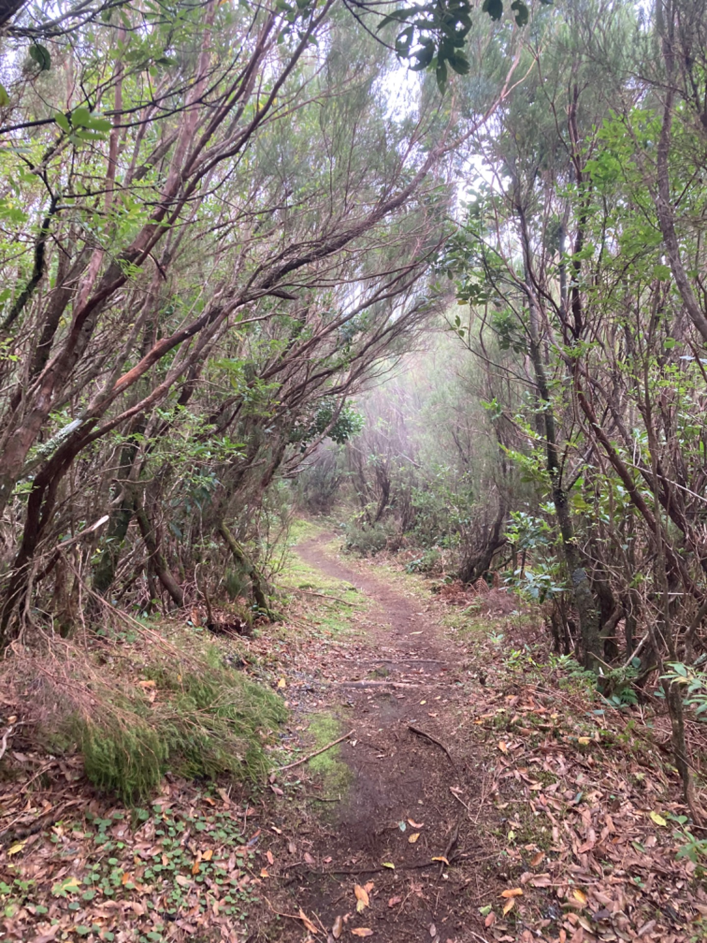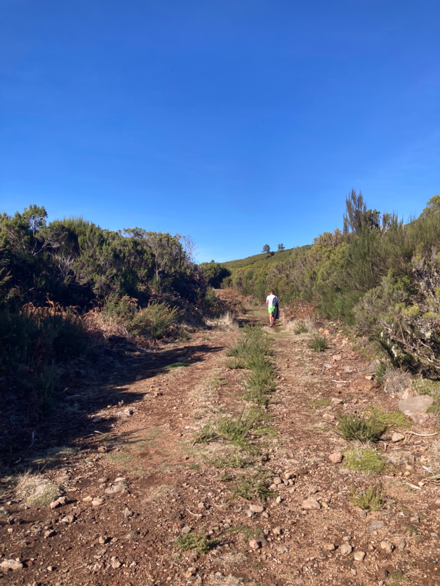 Nach einem schnellen Frühstück in einem Café des Einkaufszentrum mit frischgepresstem Orangensaft (mein bisher 3.) , belegtem Croissant und Sandwiches ging es für mich schon auf zum Treffpunkt für den heutigen Hike. Auch diese Wanderung wurde über die lokale Community, in deren WhatsApp Gruppe ich bin, organisiert und sollte heute durch den Nordwesten der Insel, bei Seixal, verlaufen. Neil, dessen Idee der Hike war, hatte einen befreundeten Taxifahrer gebucht und so saßen wir zu viert um kurz nach 13 Uhr im Taxi nach Seixal. Um die Fahrkosten zu decken, zahlte jeder 25 Euro für den gesamten Ausflug. Wir erklommen immer mehr Höhenmeter, bis uns Raff, der Fahrer, auf 1420m Höhe absetzte. Unser Hike sollte auf der großen und einizigen Hochebene Paul da Serra beginnen. Leider wurde vorher nicht gut kommuniziert, welchen Charakter die Wanderung haben sollte und so führte der gesamte Hike bergab! Es begann recht harmlos, aber nach einiger Zeit wurde der Weg so steil und vor allem rutschig, dass ich mehrere Male ausrutschte und sogar einmal hinfiel. Die beiden anderen Männer schien sowohl der Weg als meine Befangenheit mit diesem Terrain jedoch wenig zu stören und sie waren wirklich schnell unterwegs, sodass sich mein Abstand zu ihnen recht schnell vergrößerte. Nach einiger Zeit konnte ich sie nur noch aus der Ferne hören uns fand mich in einer wirklich bizarren Natur wieder. Wir waren so hoch, dass wir literarisch durch die Wolken abstiegen, deshalb war der Weg auch so rutschig und wird, so wurde mir nach einiger Zeit berichtet, “the slippy hike” genannt. Die Landschaft gleichte einer Steppe oder Tundra und umhüllte mich mit Nichts als Stille. Nach circa einer Stunde begannen meine Beine vor Überanstrengung zu zittern und ich hätte wirklich eine Pause gebrauchen können. Irgendwann konnte ich aufschließen und mich eine Zeit lang mit James, einem Geologen und Engländer, der schon in vielen Ländern gelebt hat, unterhalten. Neil war uns viele Meilen voraus und wartete mit Raff und seinem Taxi am Ende des Hikes auf uns. 2,5 Stunden später und 1200 Meter tiefer waren wir endlich angekommen und ich durfte eine wirklich vorzügliche Orange eines wild wachsenden Orangenbaumes verspeisen. Dank eines Wanderschildes erfuhr ich, dass wir soeben 8 Kilometer und über 1000 Höhenmeter hinter uns gebracht hatten und die angedachte Zeit hierfür 3,5 Stunden gewesen wären.