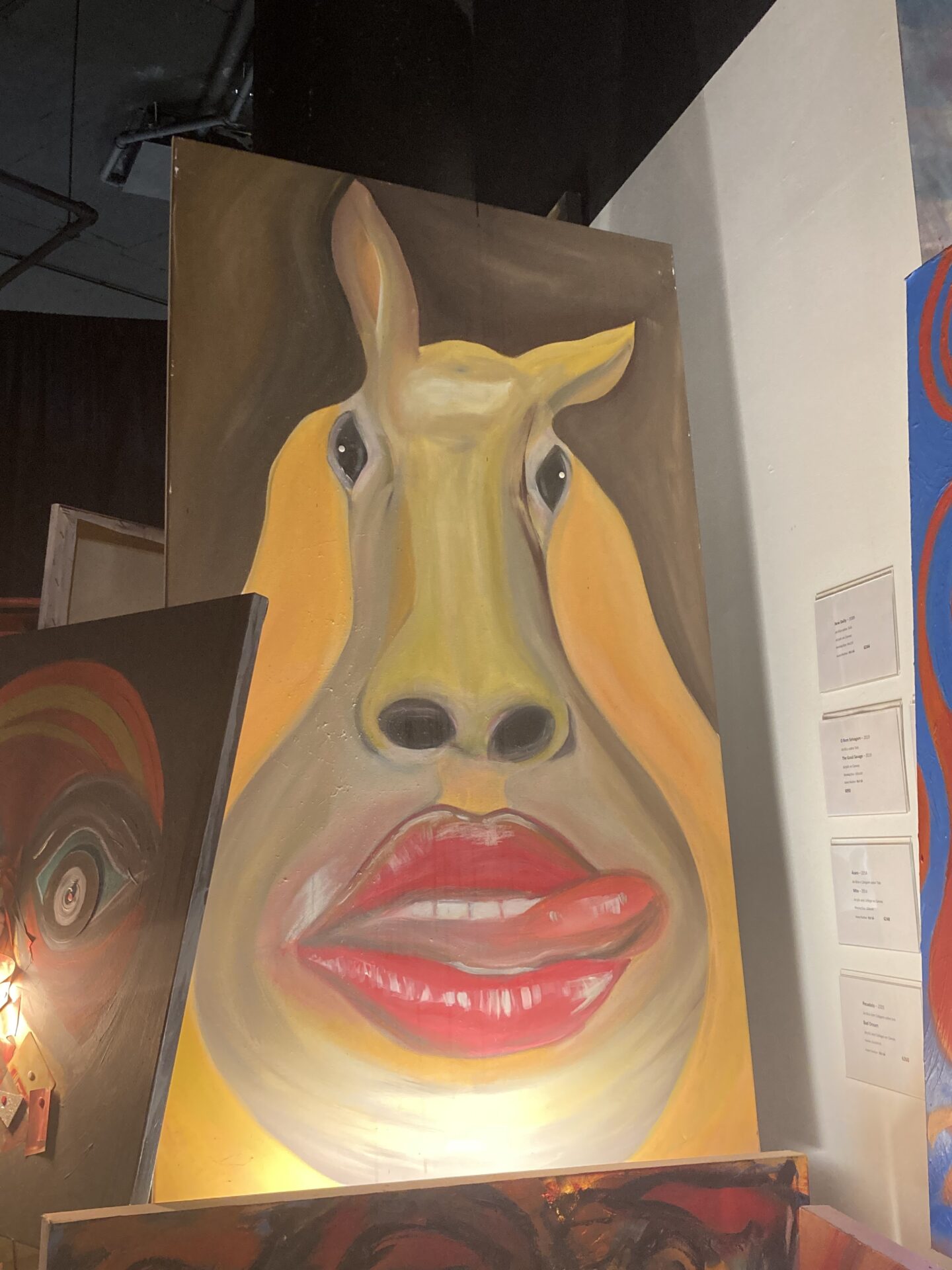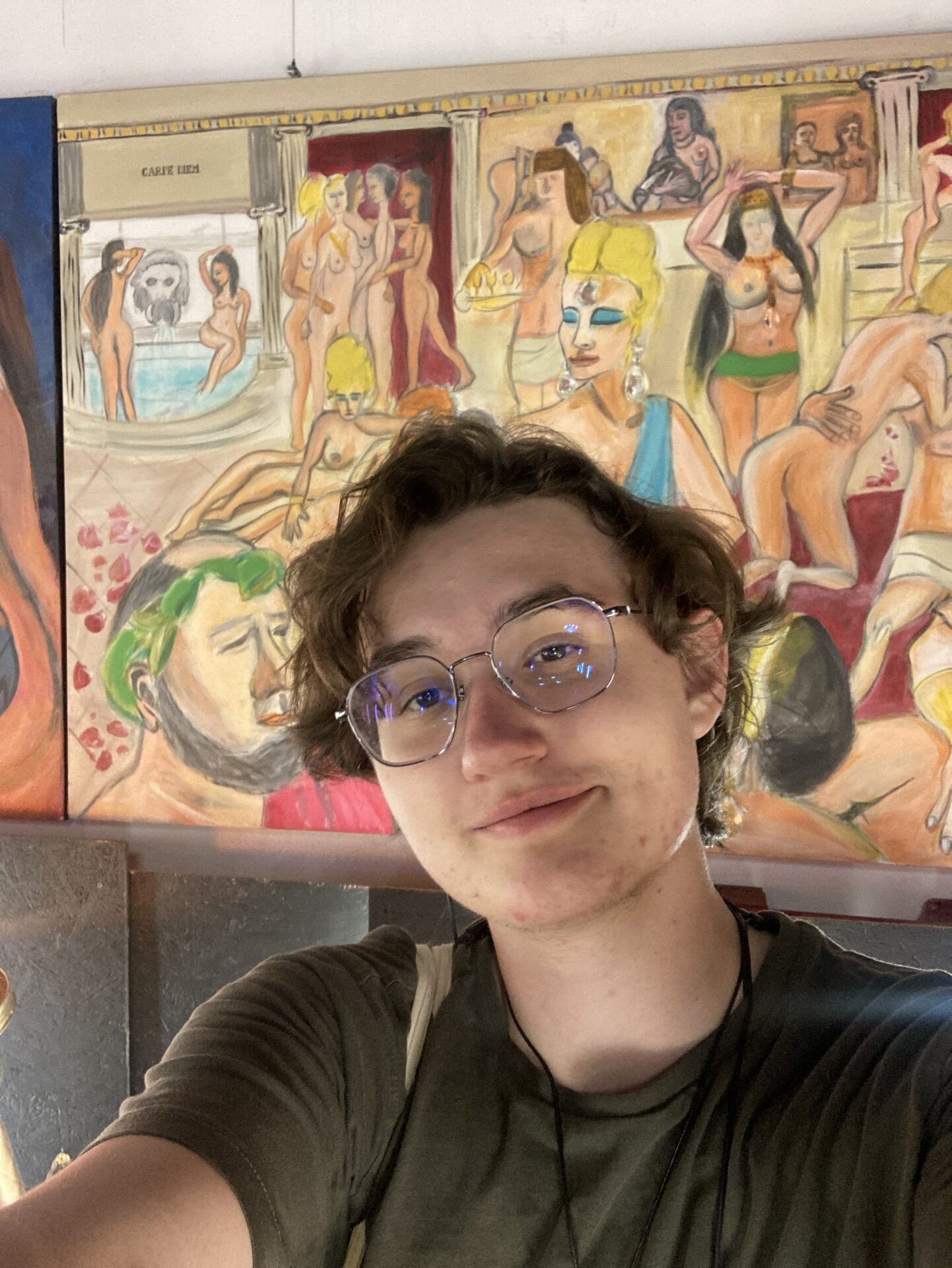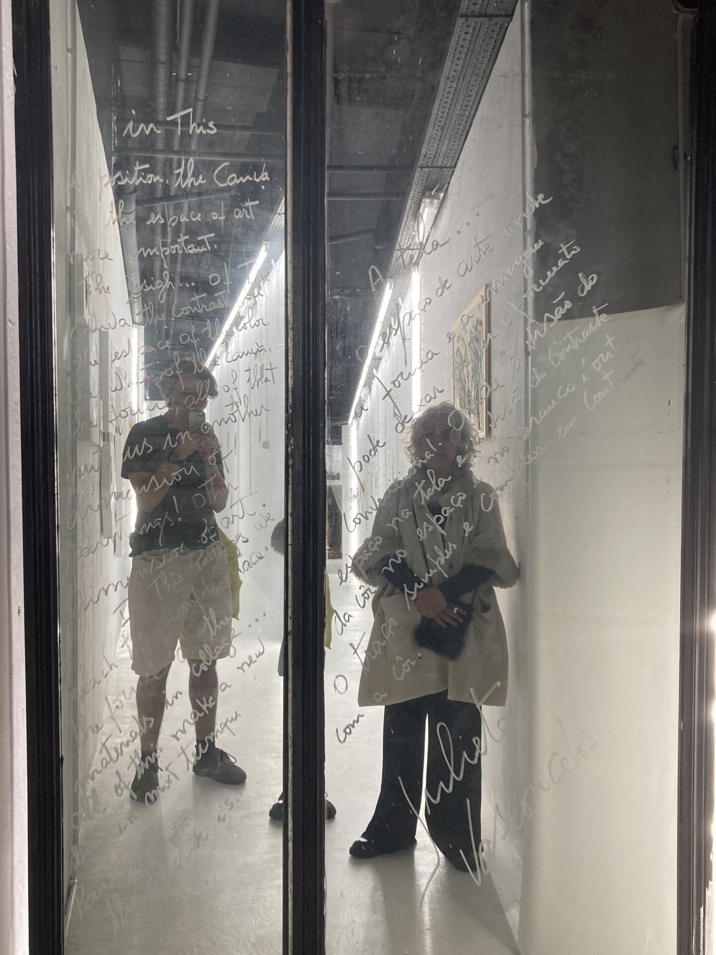 Statt einem Museum mit vielfältiger Kunst und diversesten Ausstellungsstücken, sollte ich schnell feststellen, dass bis auf einen Raum alle Räume die Werke eines einzigen Künstlers enthalten. Ruí Sa ist sein Name und er sprach mich bereits im ersten Raum an, um mir die tieferen Bedeutungen seiner Kunst zu erklären. Leider bestand der Großteil davon aus (halb-)nackten Frauen, besaß keinen Tiefgang und/oder keine überzeugende Ausführung. Viele der Räume waren mit Spezialeffekten ausgestattet; trotzdem konnte ich den meisten Kunstwerken nicht viel abgewinnen. Sie lösten einfach nichts in mir aus, waren in ihrer Bedeutung zu banal oder oberflächlich gewählt. Da ich kein großer Kunstkenner bin, ließ ich trotzdem alles auf mich wirken; „wer weiß, vielleicht ist das ja alles viel wert und Ruí Sa ein berühmter Künstler“, dachte ich mir. Zwischendurch wurde ich außerdem immer wieder von einer italienischen, älteren Damen angesprochen, die ebenfalls mit mir über die Werke in‘s Gespräch kommen wollte. Leider konnte ich sie durch ihre undeutliche Artikulation und wenigen Englischkenntnisse schwer verstehen. Es sollte sich herausstellen, dass ein Raum mit Julietas Vasconcelos Kunst, ihrer Kunst, gefüllt war. Stolz führte sie mich durch ihre Werke, die sehr abstrakt waren und aus wenigen Strichen und Klecksen auf kleinen Leinwänden bestanden. Ein Bild davon hatte sie mit „Der Premierminister von Montenegro“ betitelt und ich wusste nicht, ob das ein Kompliment oder eine Beleidigung an ihn sein sollte. Das Bild seht ihr unten in der Galerie, es folgt nach einem Foto von mir und der Künstlerin als Spiegelung. Aber auch hier dachte ich, ich hätte großes Glück, eine Privatführung mit der Künstlerin selbst zu bekommen. Auch nach der Führung war die Frau leider sehr aufdringlich, schenkte mir etwas Selbstgebasteltes und wollte mich gar nicht mehr gehen lassen.
